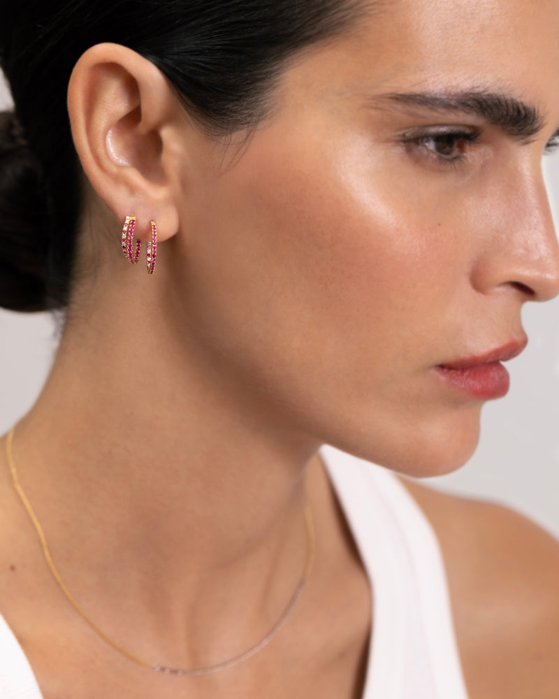 Trompe l'oeil hoops with ruby and diamonds in 18 ct. gold
