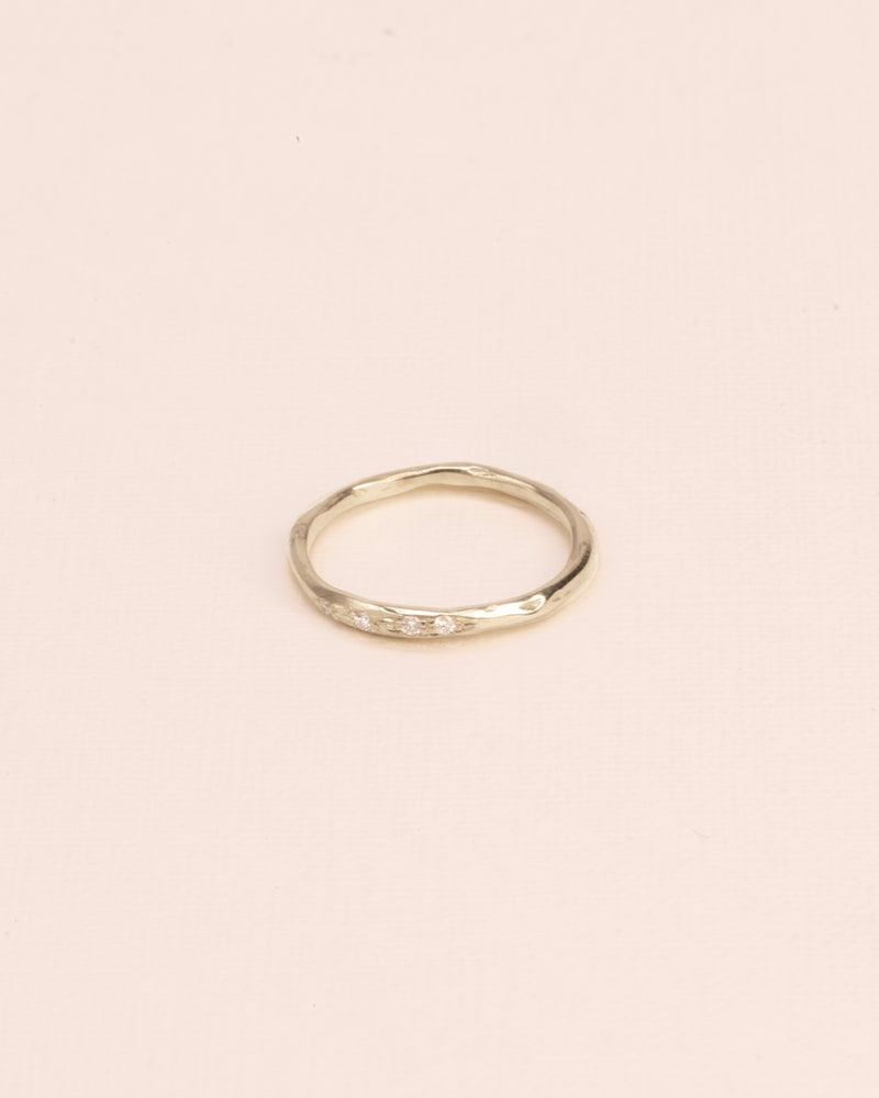 Set of three stacked organic rings with white diamonds in 18 ct. gold