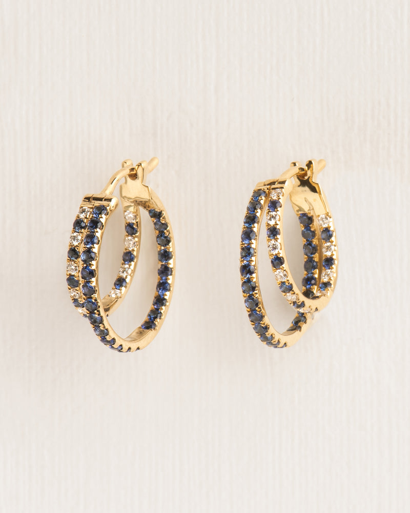 Large hoops with sapphire and diamonds in 18 ct. gold