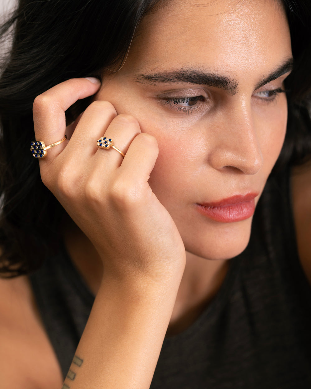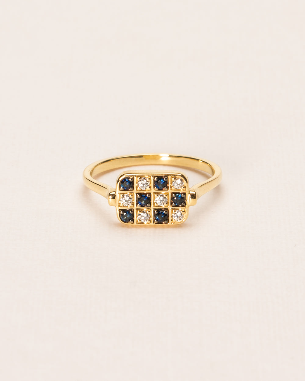 Le Petit Philidor ring with sapphire and diamond chessboard in 18 ct. gold