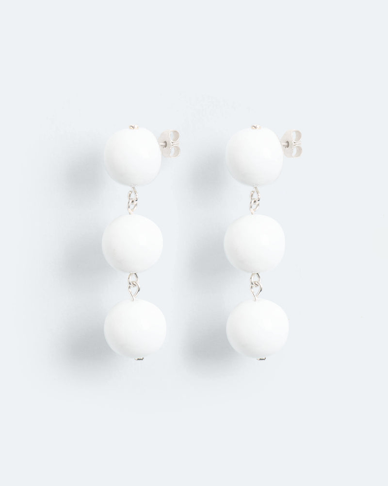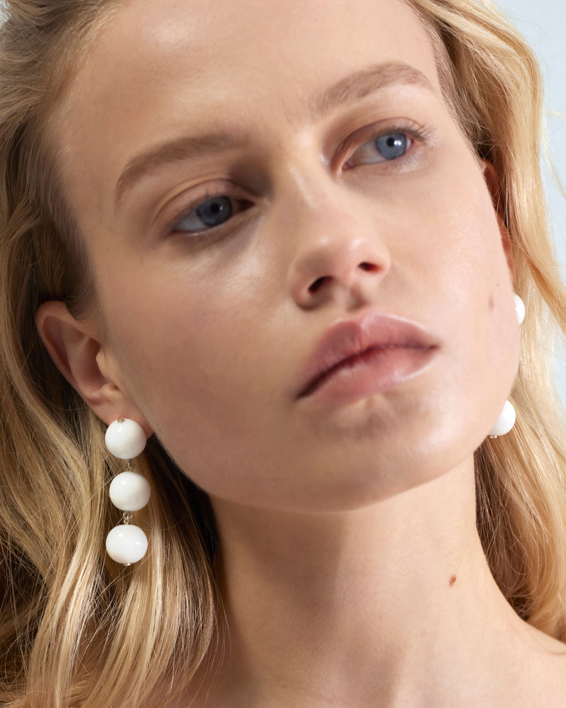 Like a buoy floating effortlessly between the waves, these dangling buoys drop stud earrings balance movement and stillness. Glossy white spheres drift in the serenity of the horizon and the quiet pulse of the sea. Handmade by a team of goldsmiths in our Antwerp atelier, the 'No Mom, it’s not just a phase'-collection captures the essence of the sailor’s journey—the call of the wild waves, the lure of faraway harbours, the quiet pull of home. Tough as rope, yet tender at heart—each piece tells a tale of adventure, longing, and artistry, in true Wouters & Hendrix fashion.