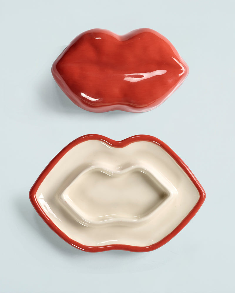 This Objet Mouleversant, an earthenware butter dish, builds on the lip-shaped dish from the first collection, adding a lid for storing butter or oil. The red lips are an icon of surrealism (Mae West’s or Lee Miller’s? Opinions differ!) and a recurring motif in Wouters & Hendrix's jewellery and design. Whether used to store butter or to serve olive oil combined with bread for dipping, this piece adds sensuality and playfulness to your daily rituals.