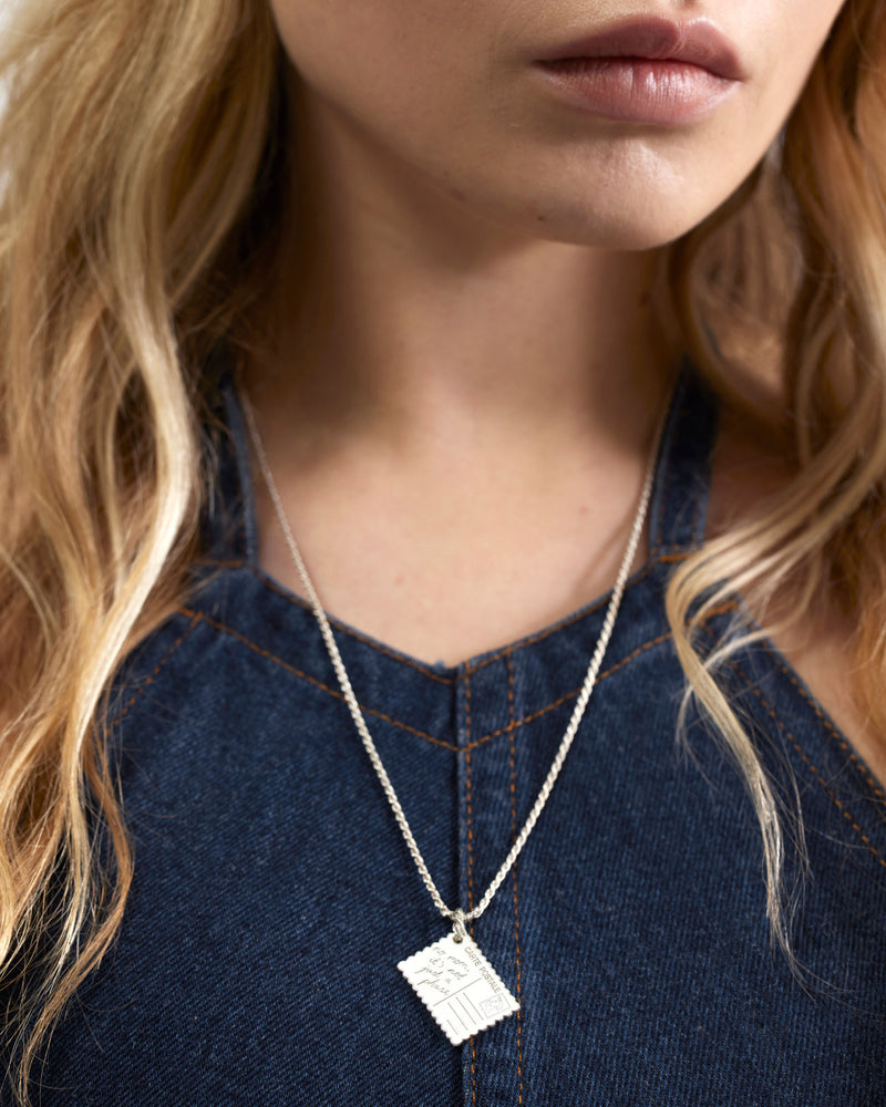 A love letter carried by the waves, etched in silver and gold. This rope chain necklace with Carte-Postale pendant is a rugged yet tender keepsake—a sailor’s silent promise to the homefront, inspired by the timeless ritual of postcards sent from sea to shore. Handmade by a team of goldsmiths in our Antwerp atelier, the 'No Mom, it’s not just a phase'-collection captures the essence of the sailor’s journey—the call of the wild waves, the lure of faraway harbours, the quiet pull of home. Tough as rope, yet tender at heart—each piece tells a tale of adventure, longing, and artistry, in true Wouters & Hendrix fashion.