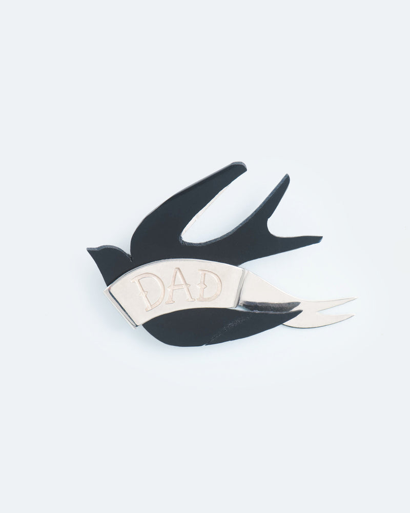Statement tattooed swallow brooch "DAD"