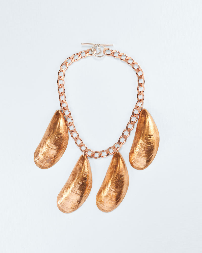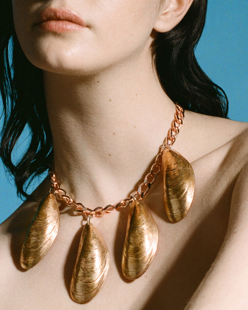 This necklace is a direct translation of Marcel Broodthaers' Mosselpot. Wouters & Hendrix has always found inspiration in Belgian surrealism, and the mussel is a symbol that has been part of our collections for years. Subtle rebels with a love for surrealism, we are drawn to unexpected combinations of materials and techniques, gently adorning your body with tales in silver and gold.