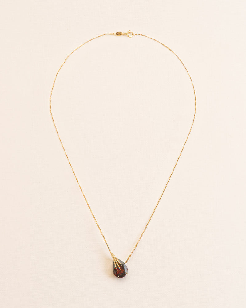 Necklace with signature grigri clasping a garnet in 18 ct. gold