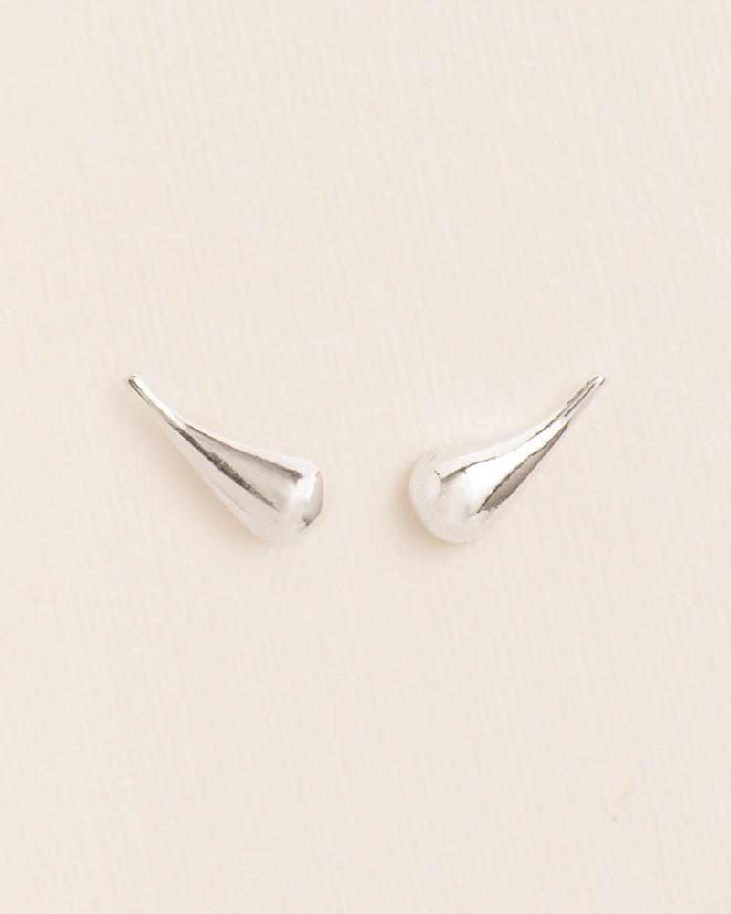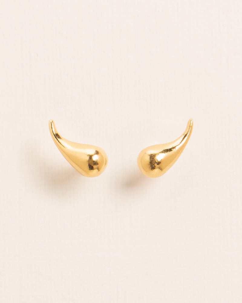 Small droplet stud earrings from the 'Les Eternelles' collection. The archetypical curvilinear shape is challenged by an enigmatic force. Born from the secrets of simplicity, this collection consists of icontournables that become a part of you, treasures to have and to hold forever.