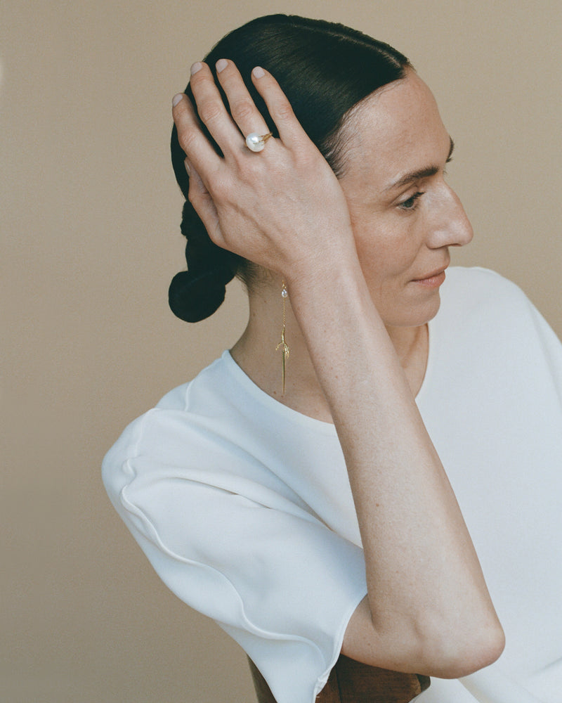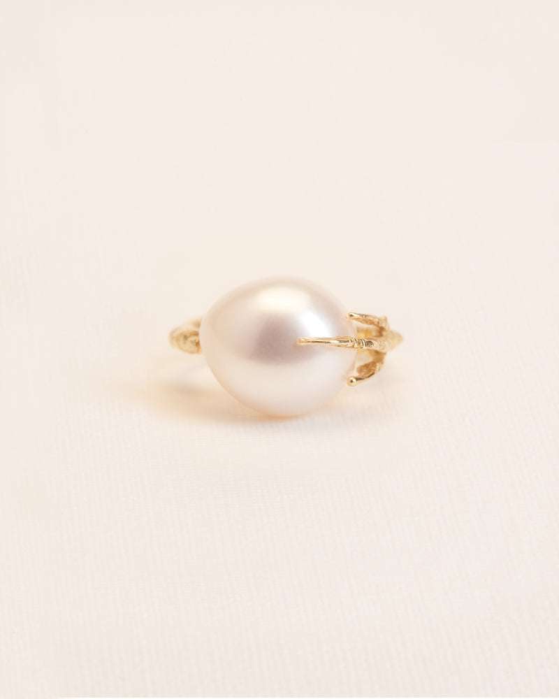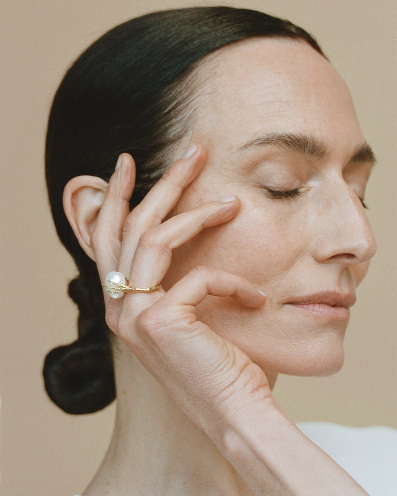 Set of three stacked organic rings with white diamonds in 18 ct. gold