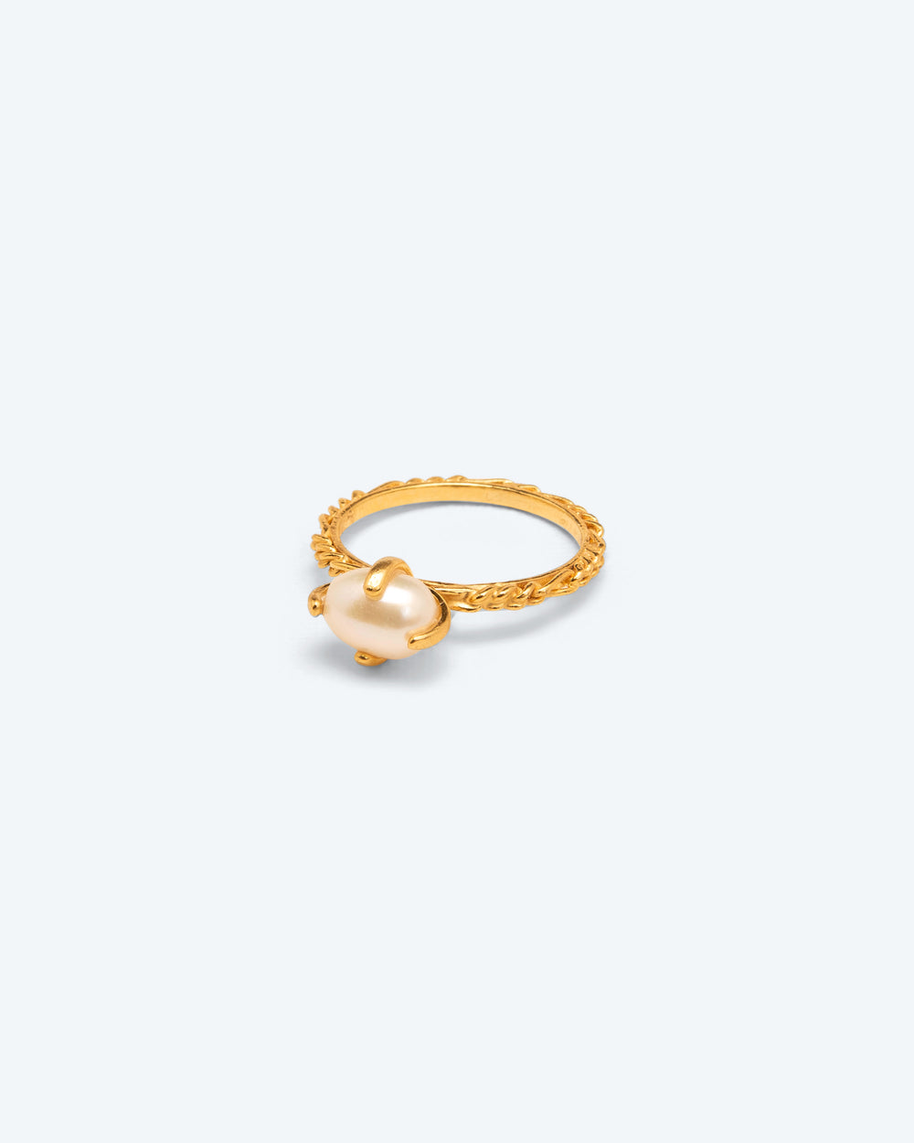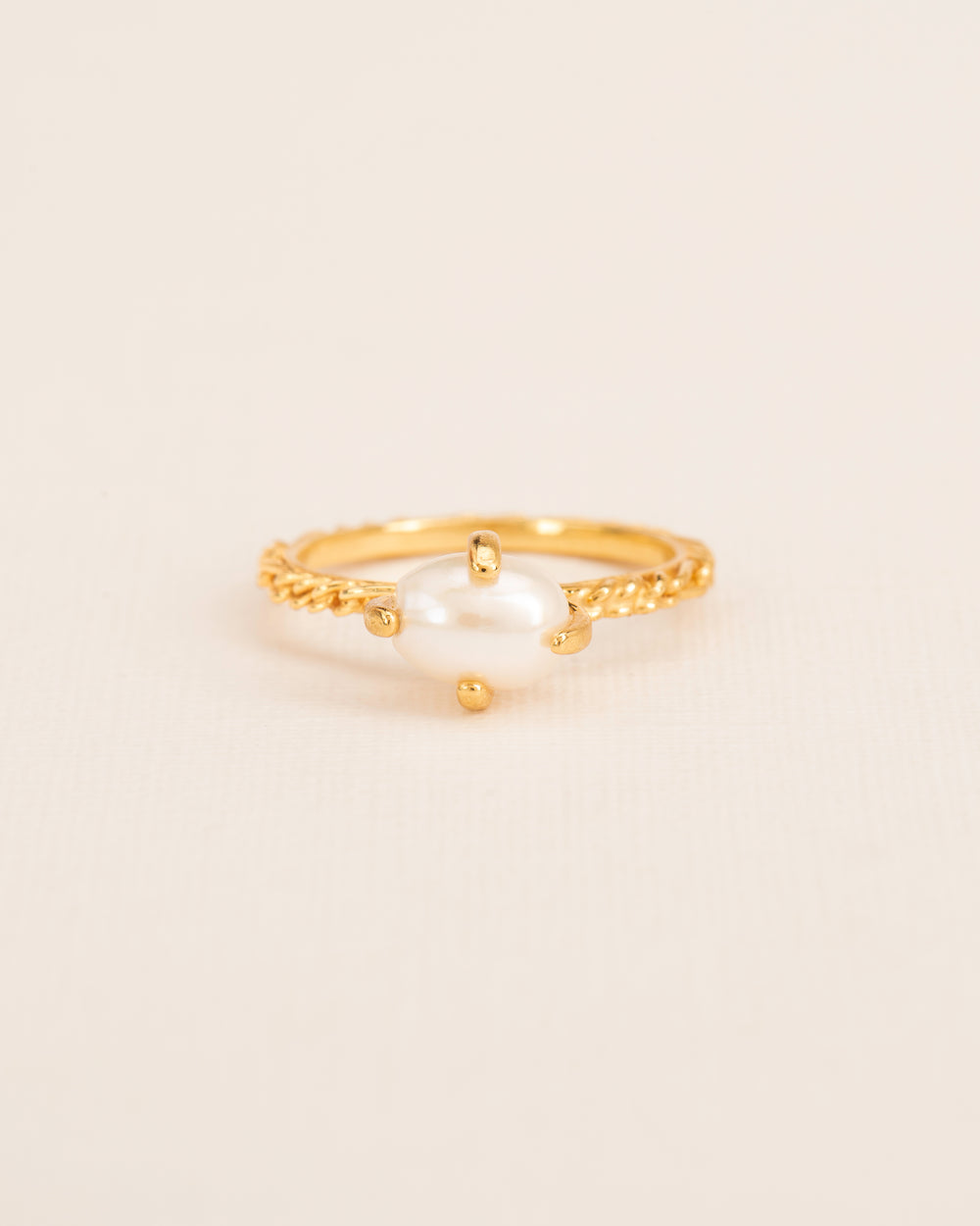 Ring with 'Chapters' texture and freshwater pearl in silver