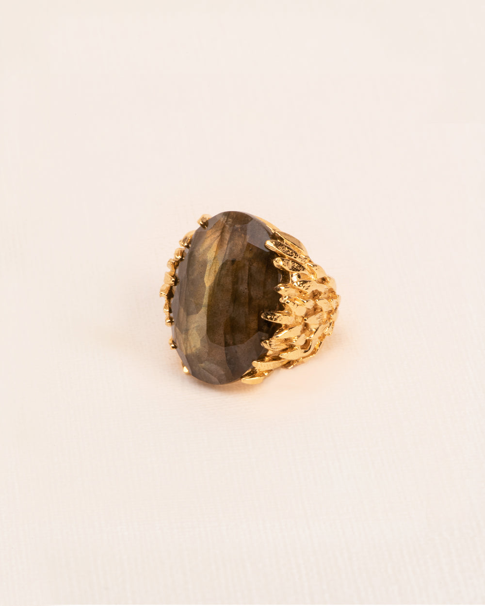 Ring with sapphire and diamond rosette in 18 ct. gold
