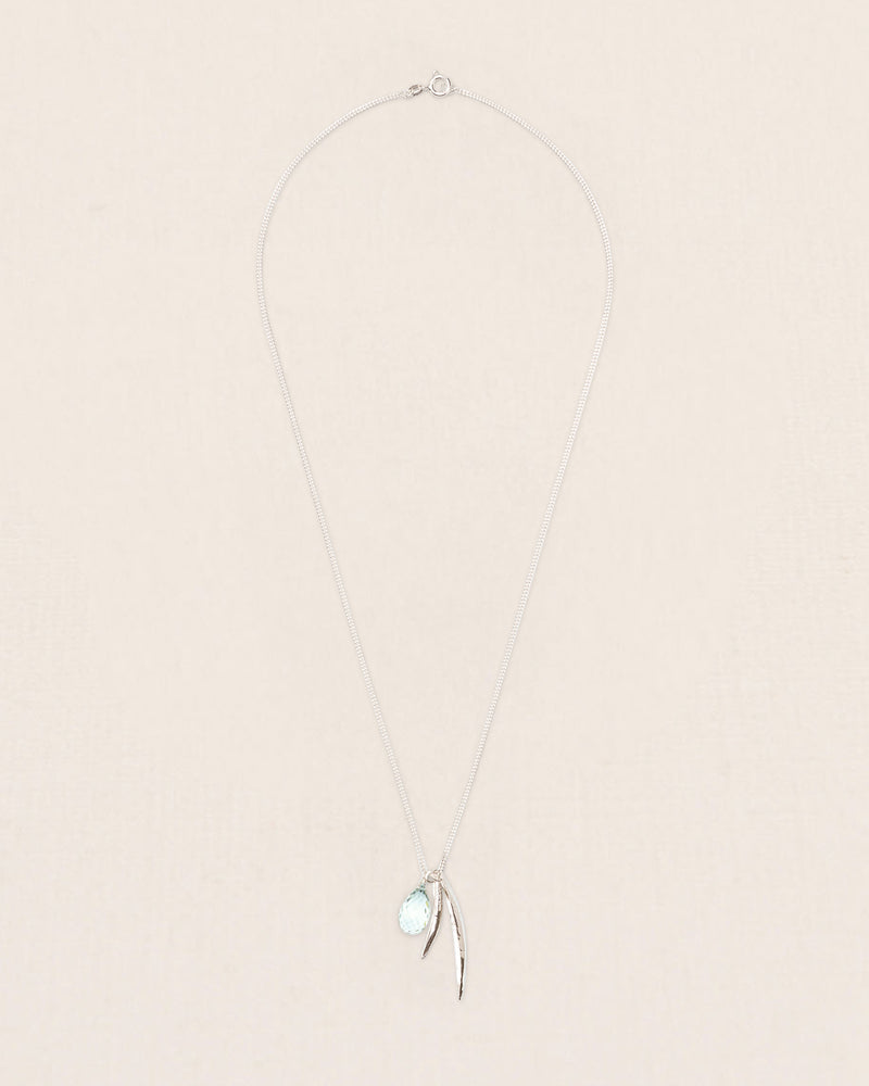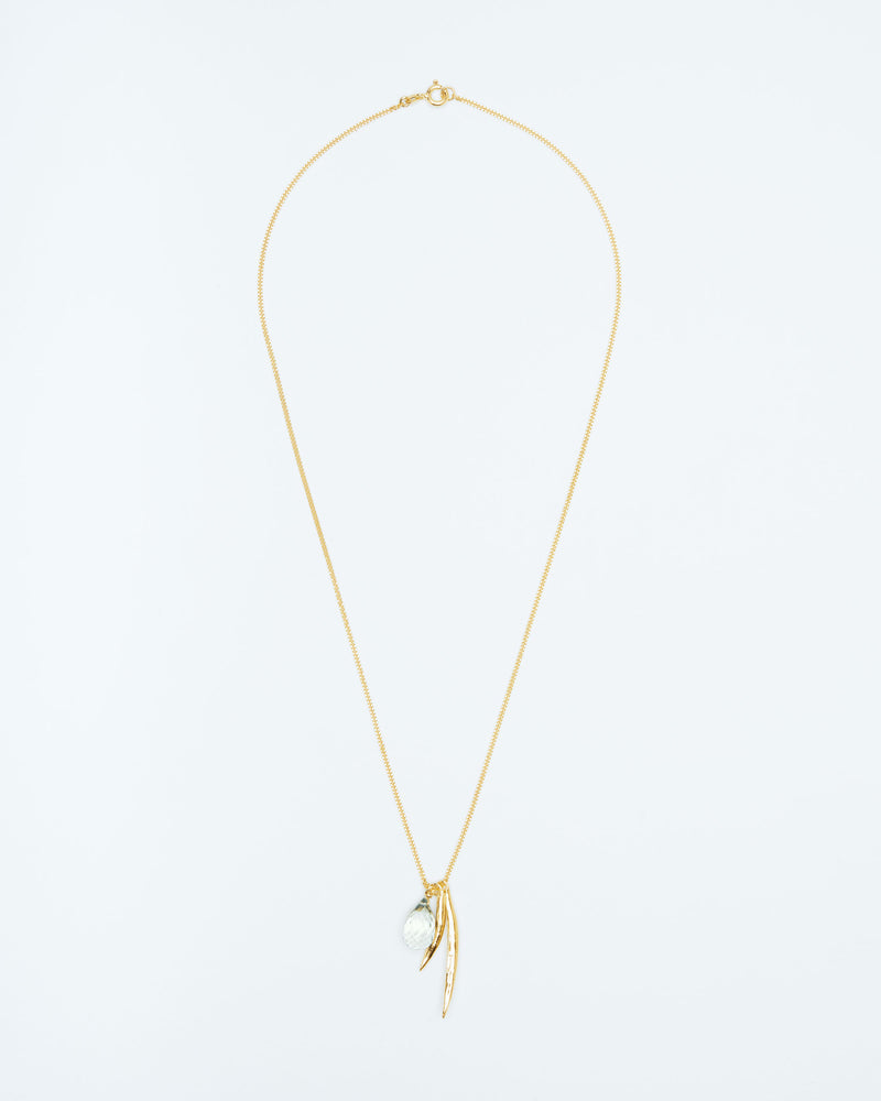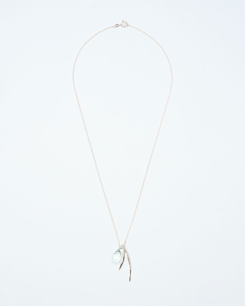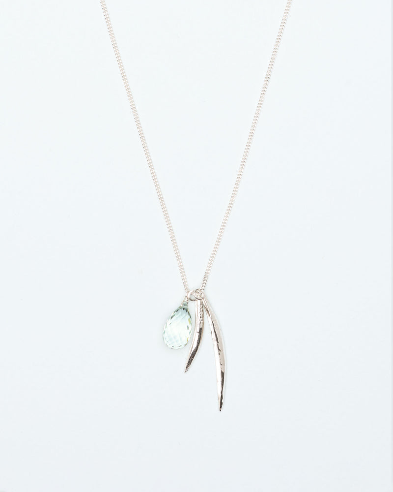 Necklace with leaves and green amethyst pendant in silver