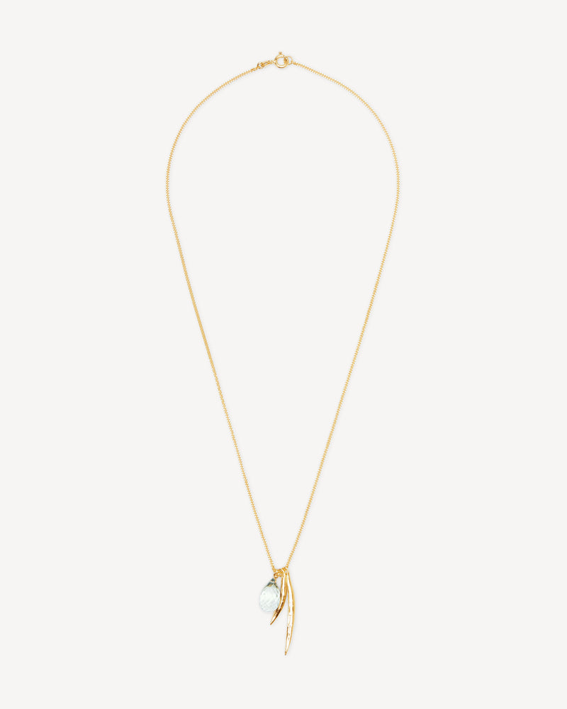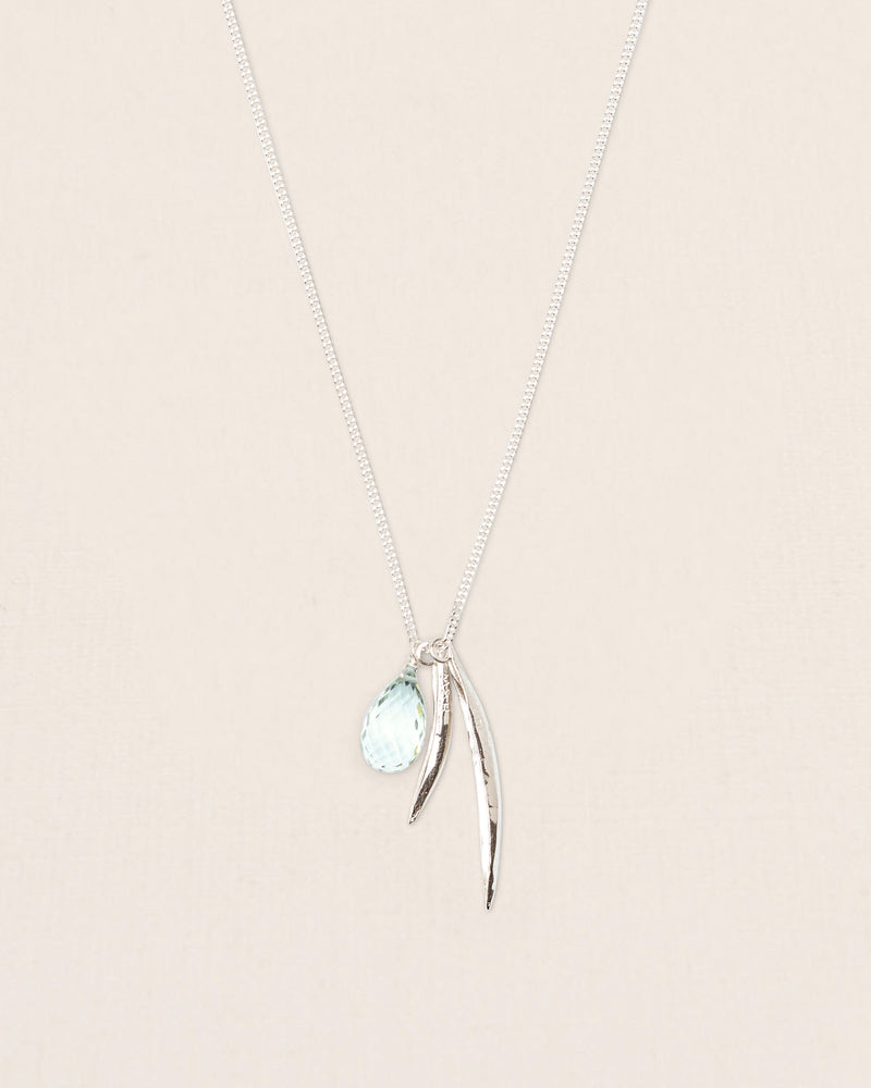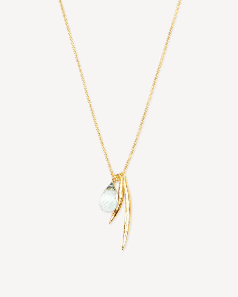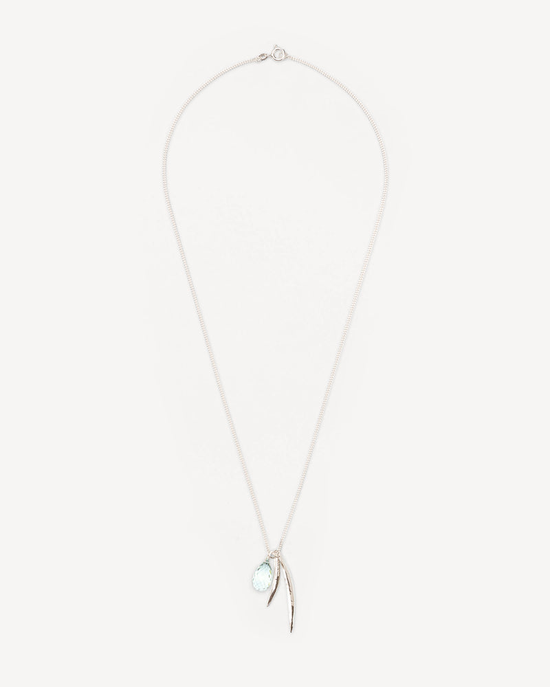 Necklace with leaves and green amethyst pendant in silver