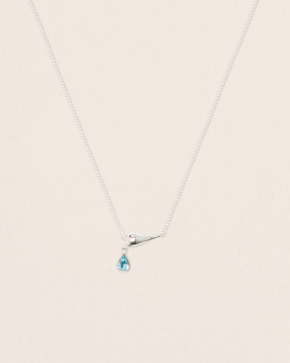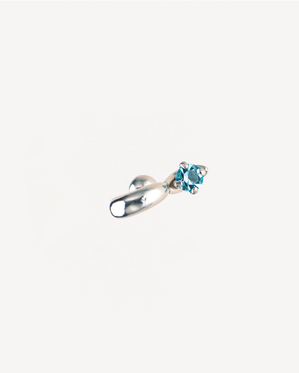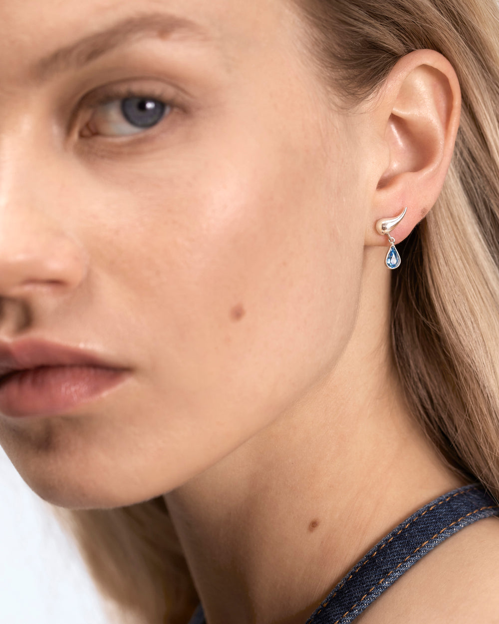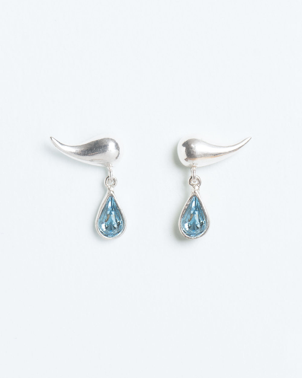 Droplet stud earrings with dangling aquamarine crystal in silver
