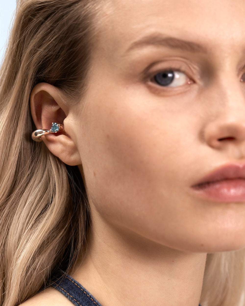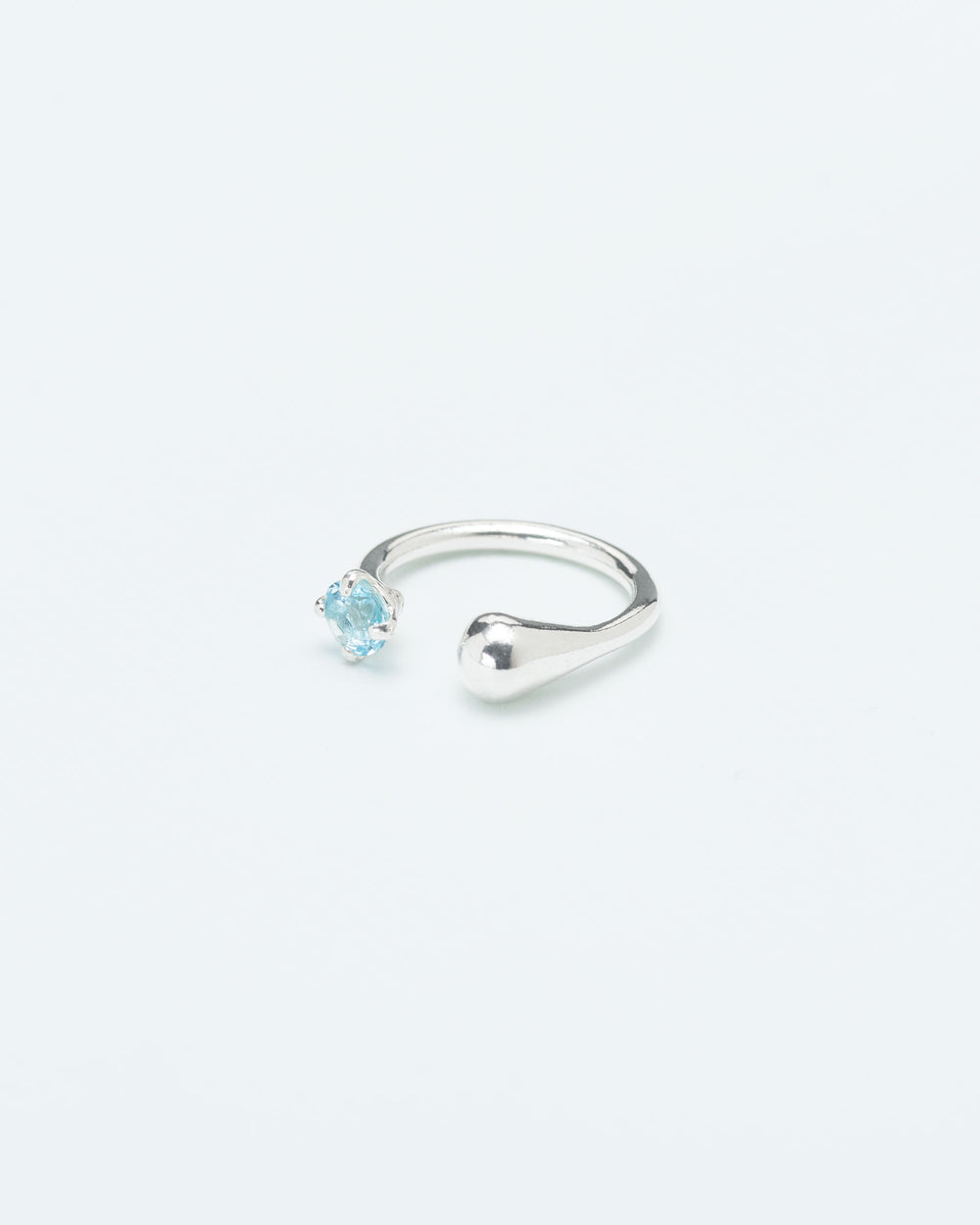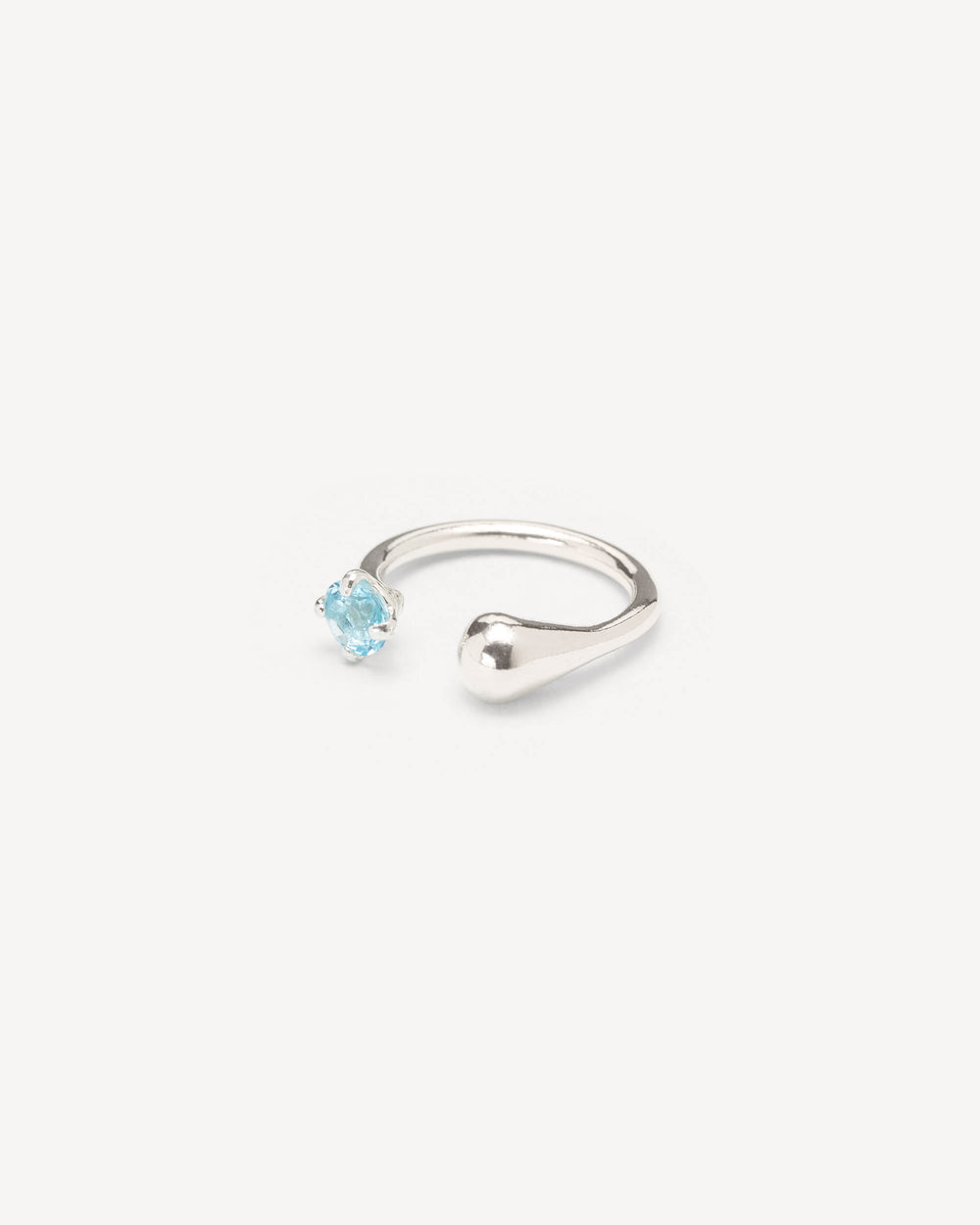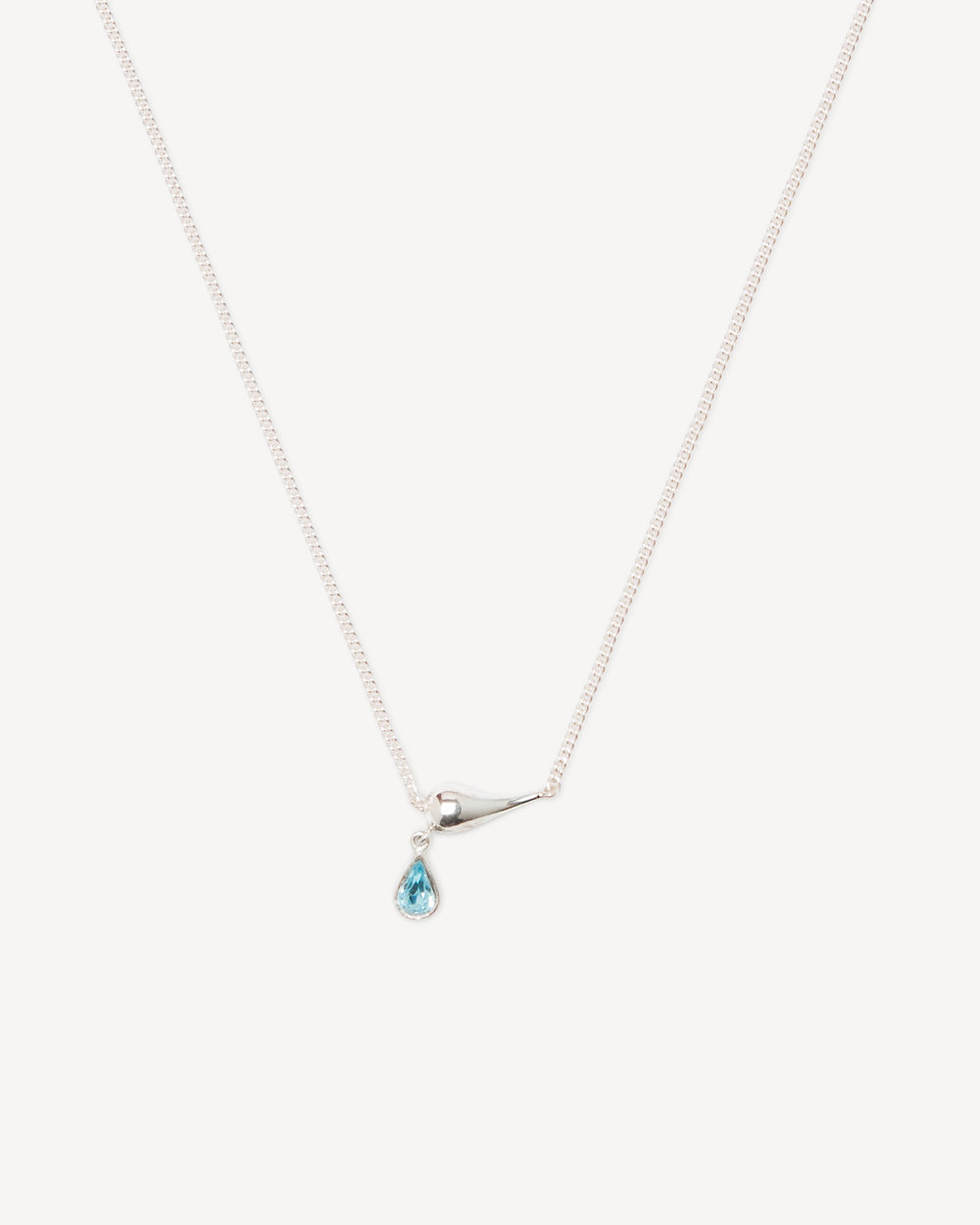 Droplet stud earrings with dangling aquamarine crystal in silver