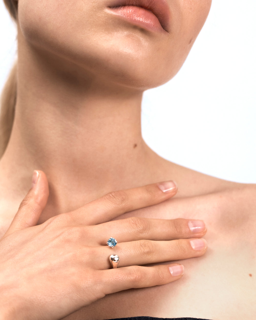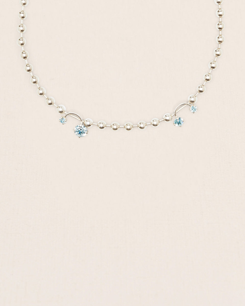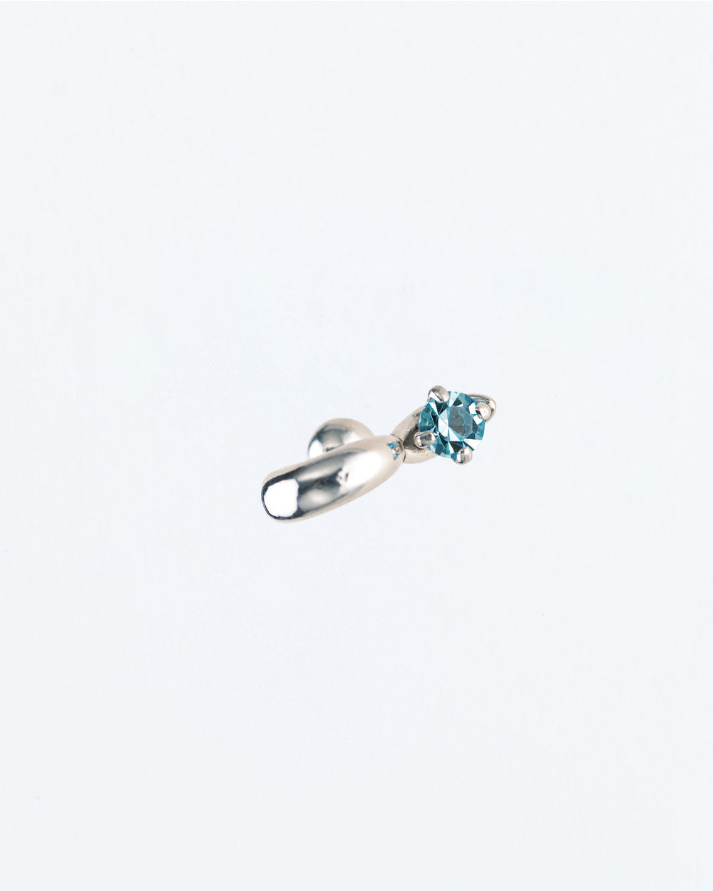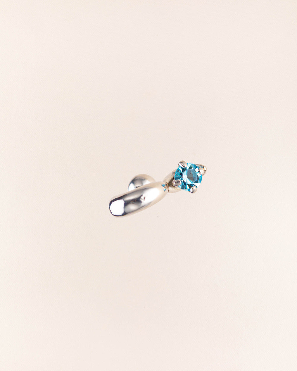 Stud earrings with floating sphere and aquamarine crystal in silver