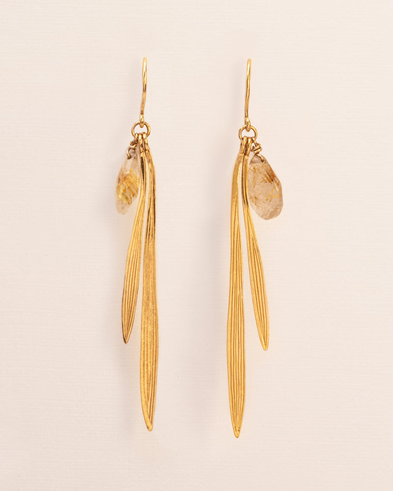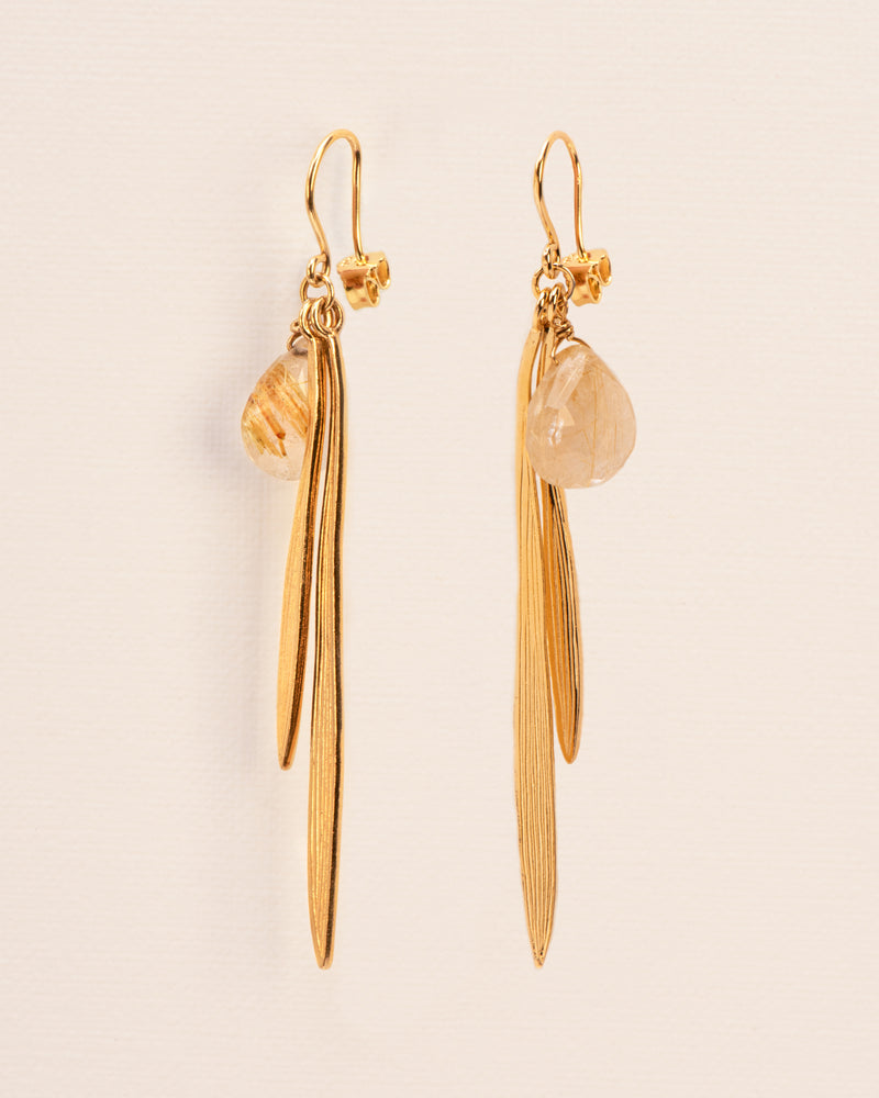 Hook earrings with bamboo leaves and rutilated quartz in silver