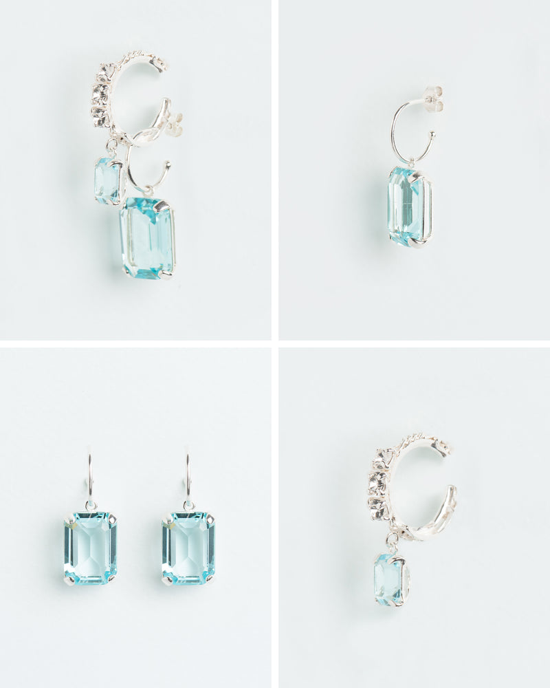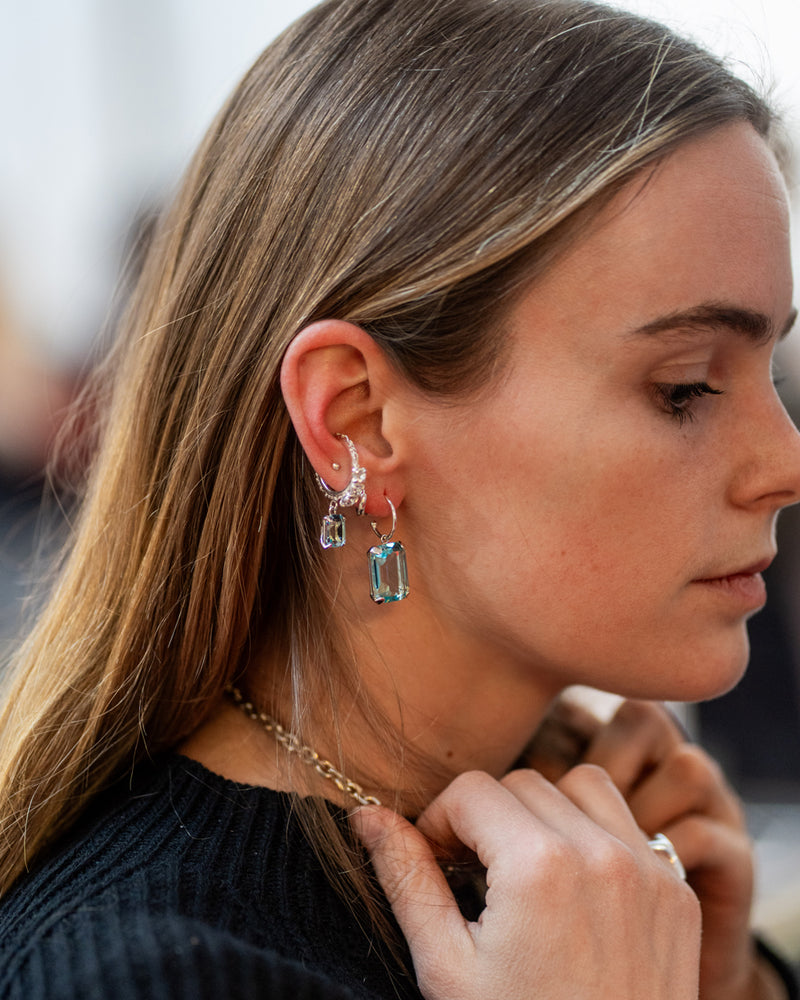 Single cuff with aquamarine crystal and detachable hoop earring