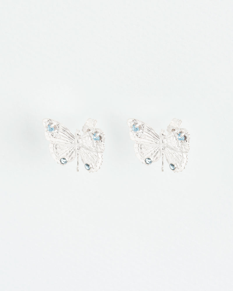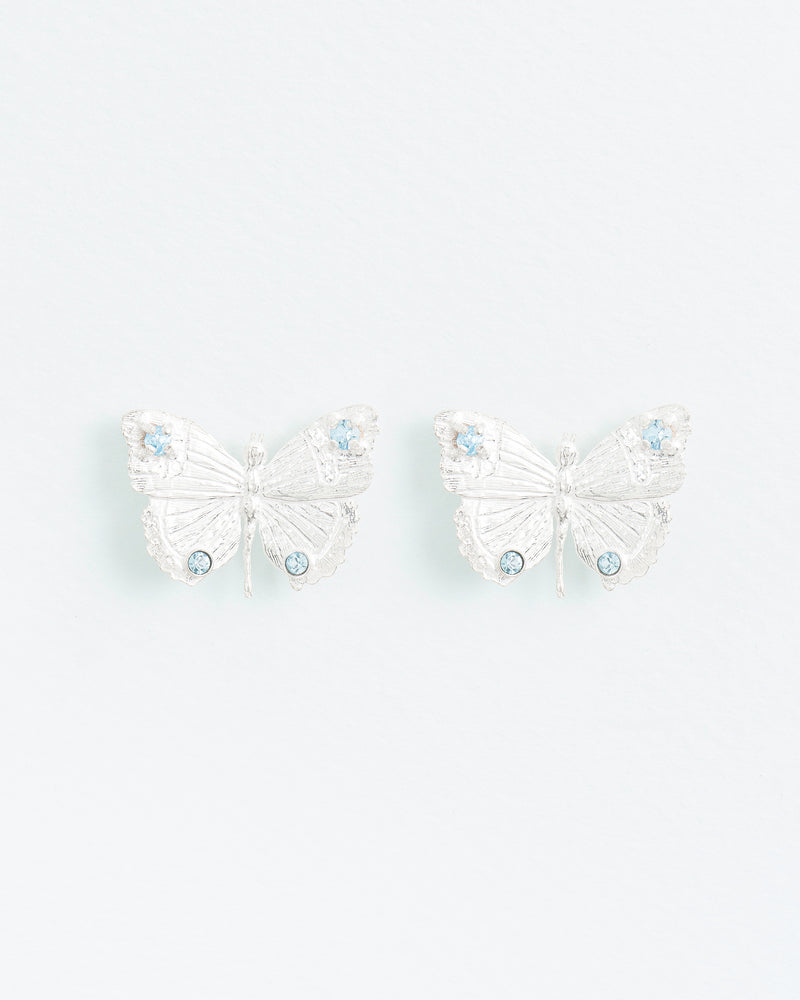 Ethereal and free-spirited, these butterfly stud earrings with aquamarine crystals are a nostalgic journey back to our carefree millennial 2001 collection.