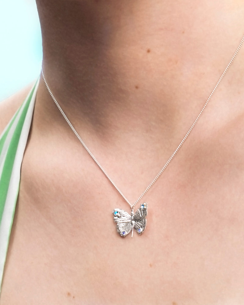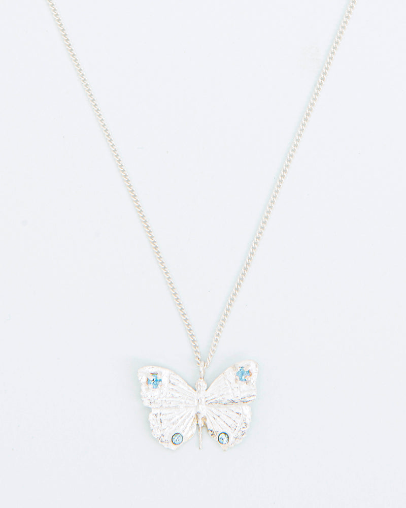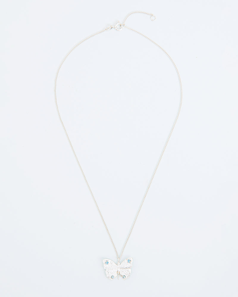 Ethereal and free-spirited, this necklace with butterfly pendant and aquamarine crystals is a nostalgic journey back to our carefree millennial 2001 collection.