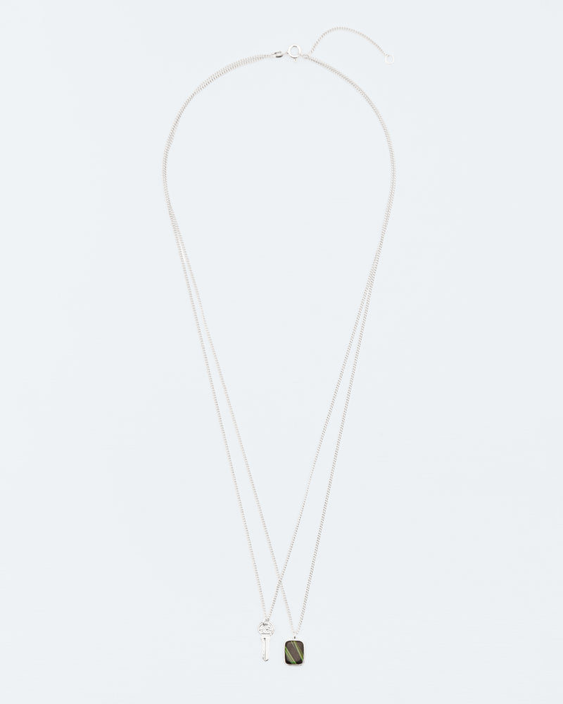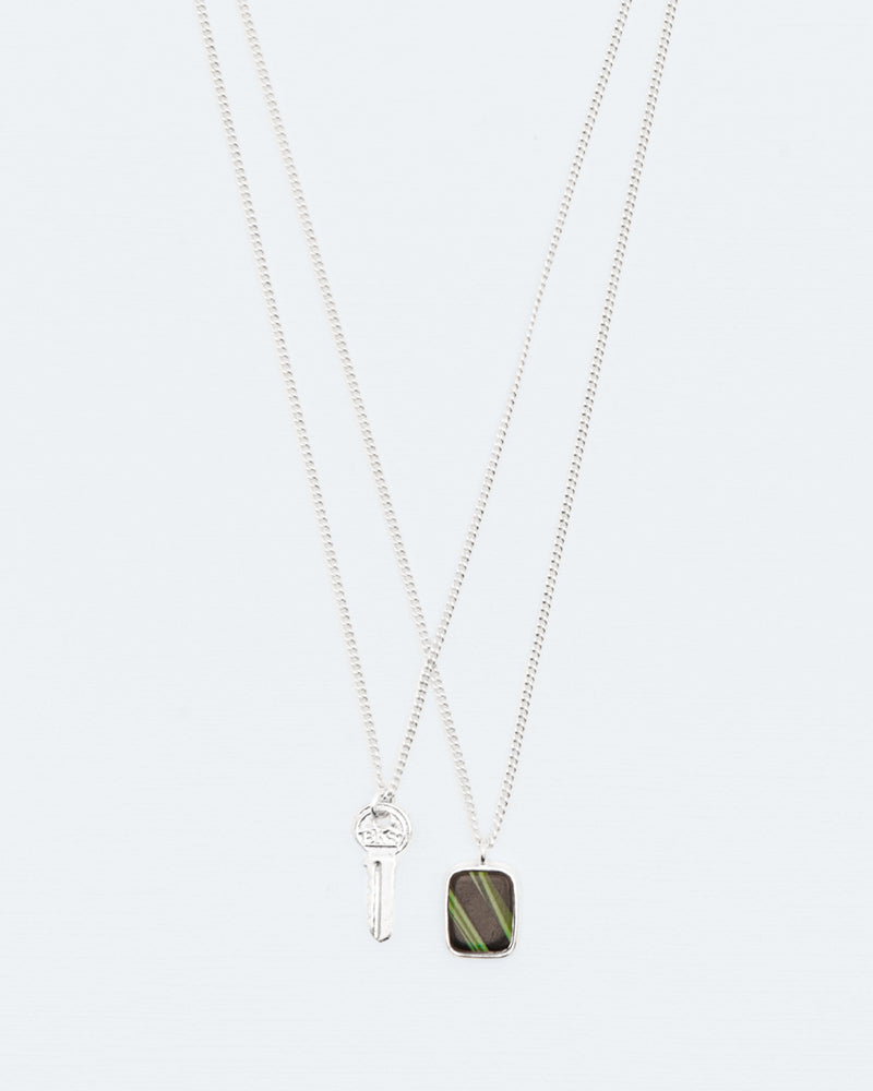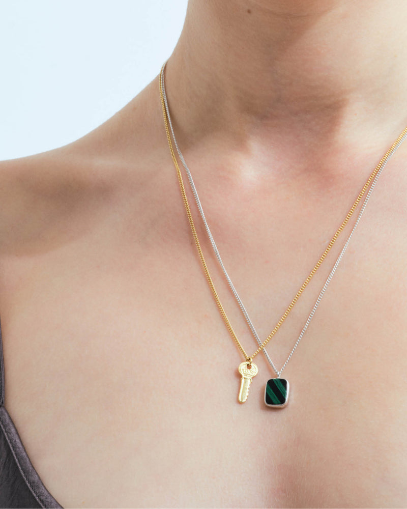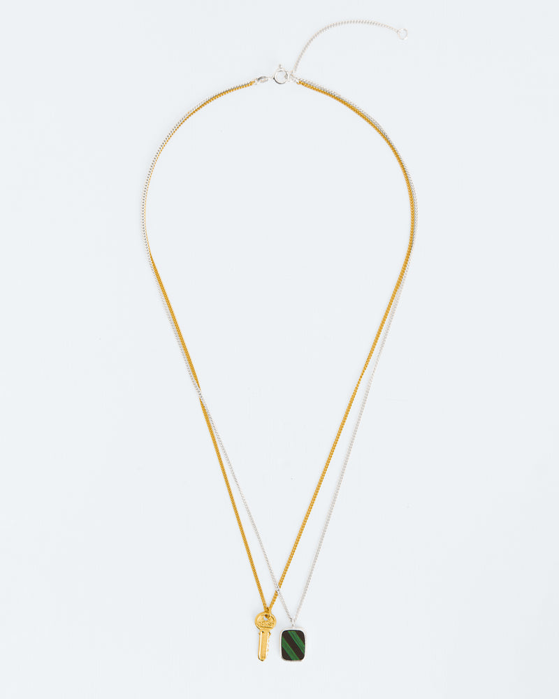Wouters & Hendrix collections have always been full of symbols referencing Belgian surrealism. The key in the 'La Fête des Bêtes' collection is a reference to René Margritte, as it occurs in his paintings, but also an indirect interpretation of his tendence to display ordinary objects in an unusual context. Something that has inspired Wouters & Hendrix' design process. The mosaic inlay is a meticulous work, inspired by an old technique often used to decorate cufflinks. The minimalist setting allows the malachite to radiate contrasted by black onyx.