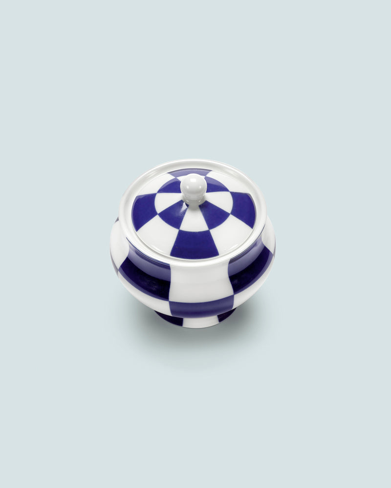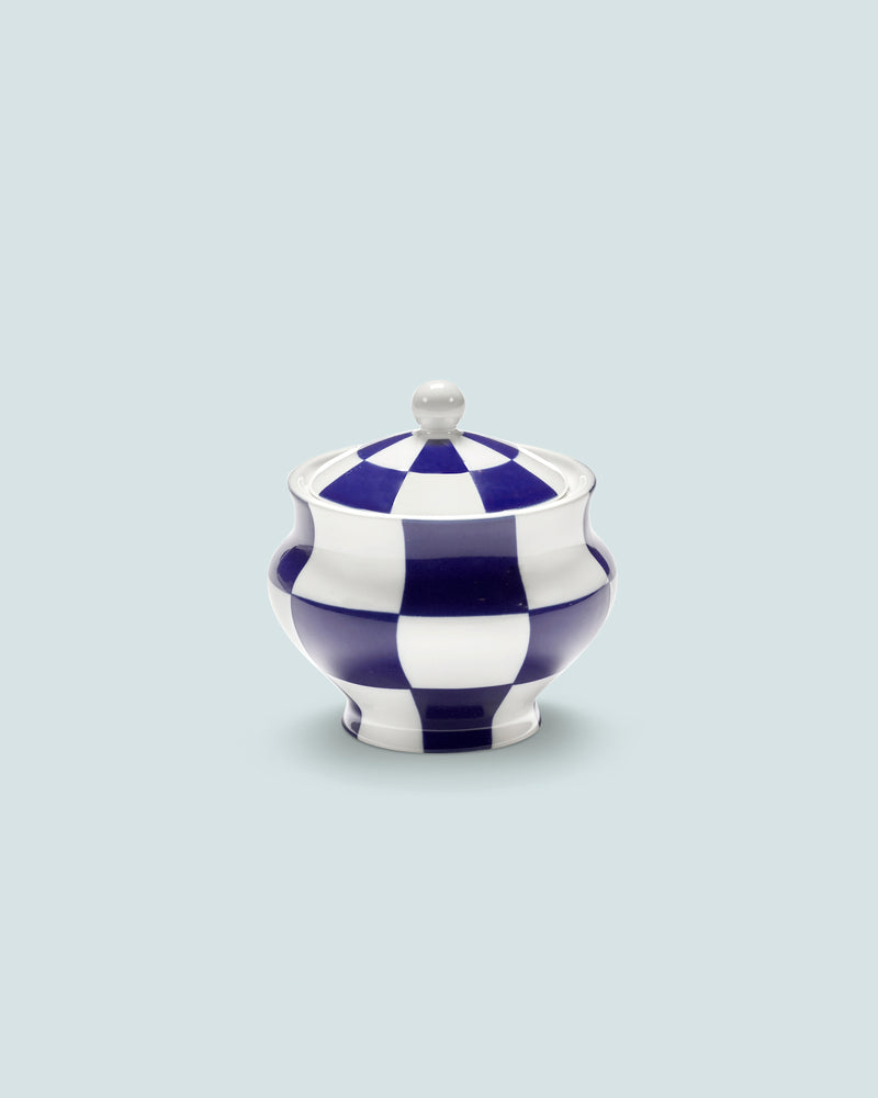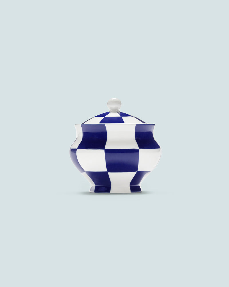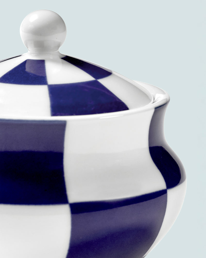Inspired by the iconic chess pattern that ever so often slips into Wouters & Hendrix jewellery, this La Fête des Bêtes sugar bowl is draped in a lapis lazuli blue motif as a not-so-subtle ode to the art of chess. Thankfully though, the only real move here is deciding whether or not to reach for another cup of tea.