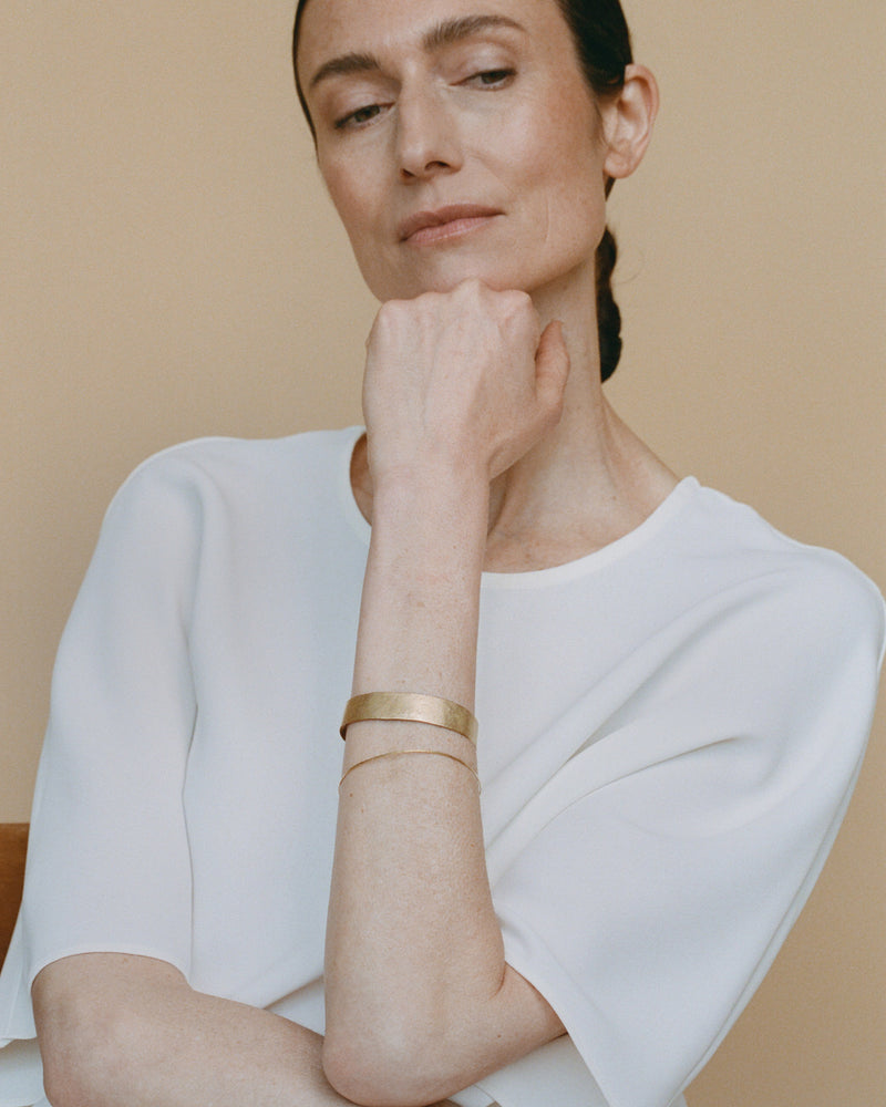 A bracelet exposing the raw beauty of unpolished gold, carefully hammered by hand in our Antwerp atelier. This traditional technique is loud, but the result is subtle in its simplicity. Crafted from Mother Nature’s most cherished gifts, ‘Les Eternelles' are treasures to have and to hold forever.
