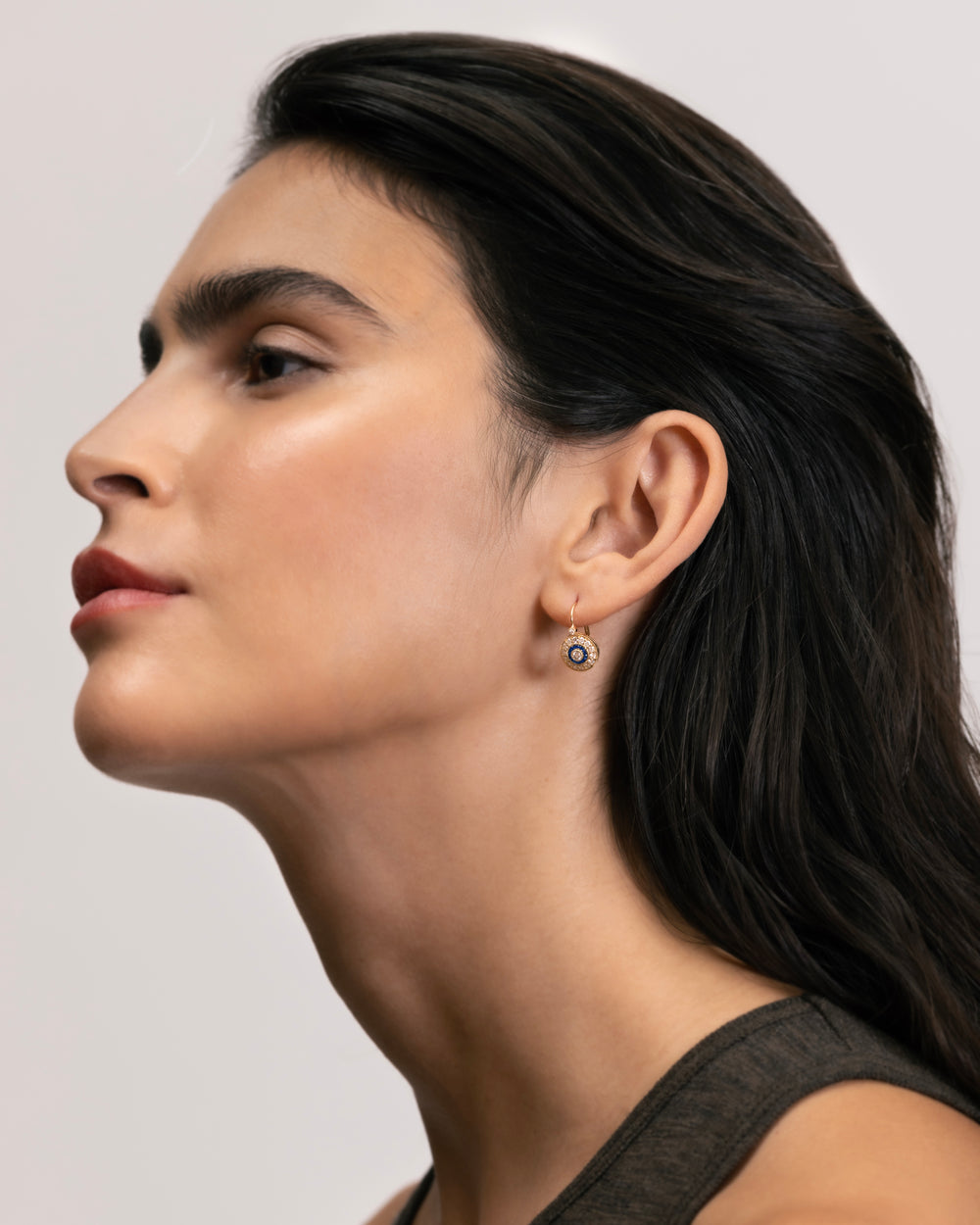 Leverback earrings with sapphire and diamond rosas in 18 ct. gold
