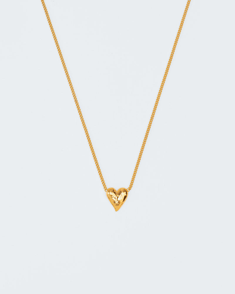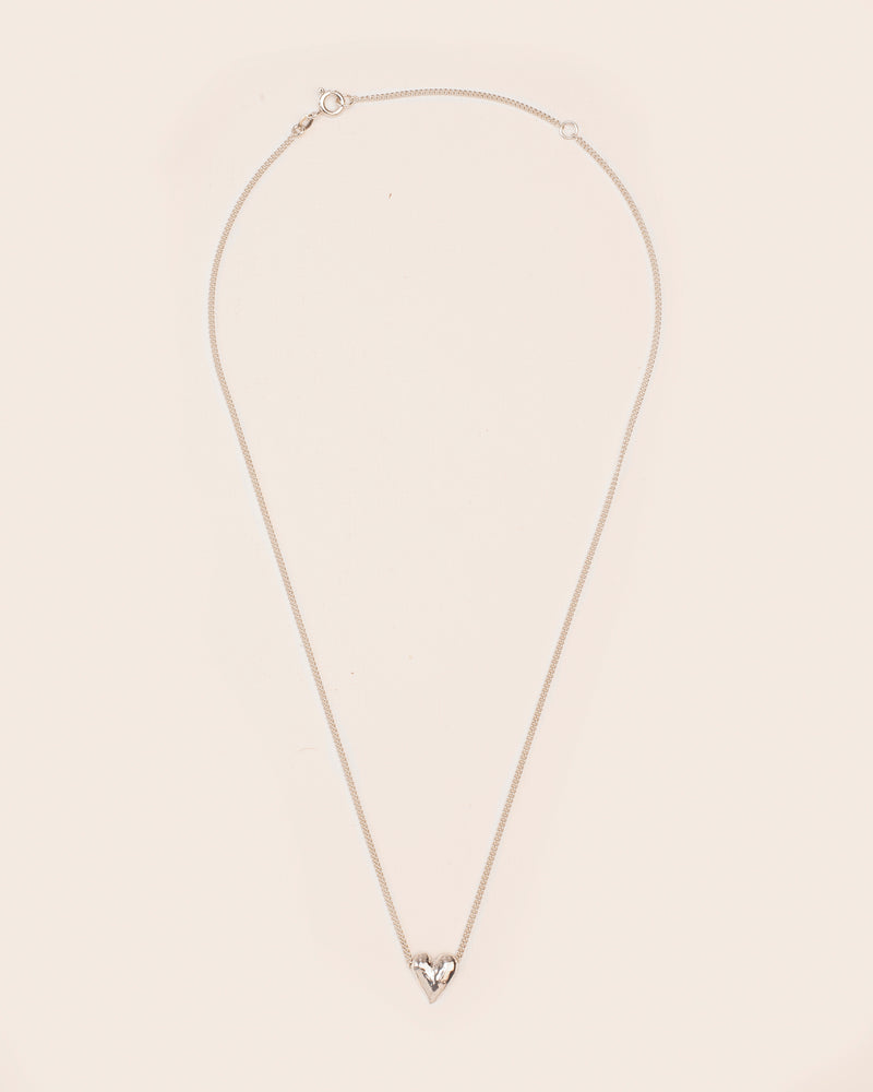 love and 'The Tell-Tale Heart' collection is all about that. The necklace with a hammered heart is subtle and refined in appearance. The heart shape is universal and timeless, it embodies emotionality and in that sense is perhaps the ultimate shape for a piece of jewellery, for jewellery’s sentimental value is often greater than its intrinsic value.The heart was hammered entirely by hand in Wouters & Hendrix’ studio in Antwerp. The technique is loud, but the pieces of jewellery are anything but.
