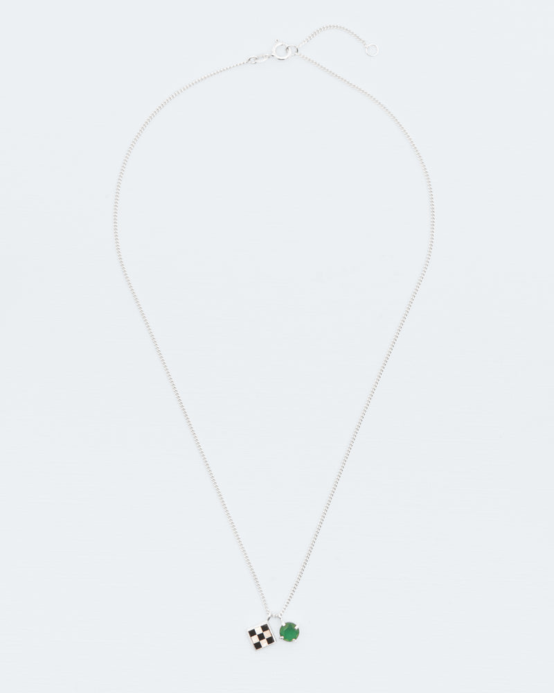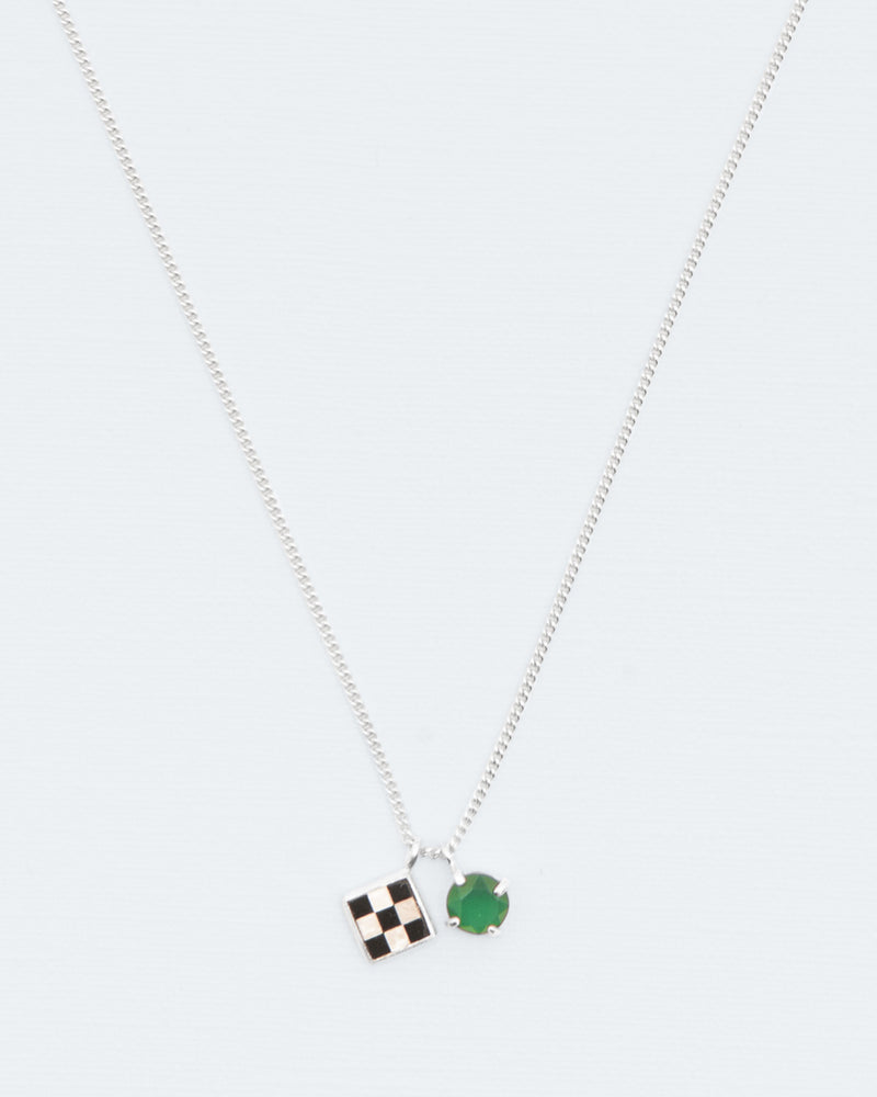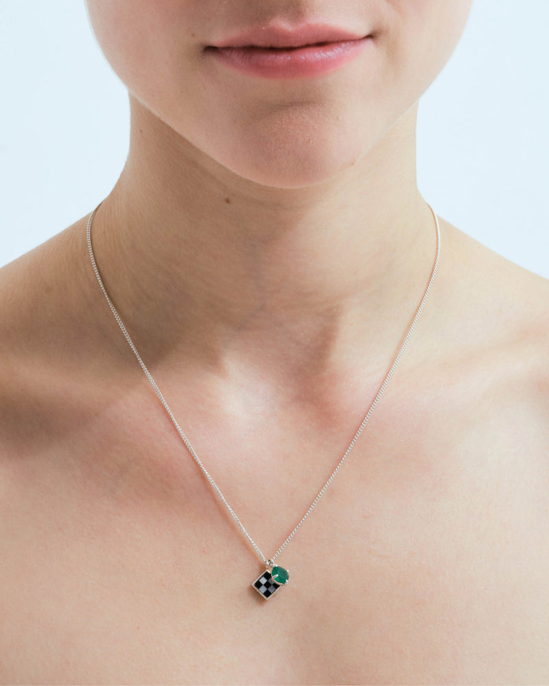 Wouters & Hendrix collections have always been full of symbols referencing surrealism. The chess inlay is a meticulous work, inspired by an old technique often used to decorate cufflinks. The mosaic is contrasted with an opulent green agate pendant. The chessboard in the 'La Fête des Bêtes' collection is a reference to Man Ray and Marcel Duchamp. Combined with a green agate pendant, the Wouters & Hendrix designers challenged the idea of 'a pair' of pendants.