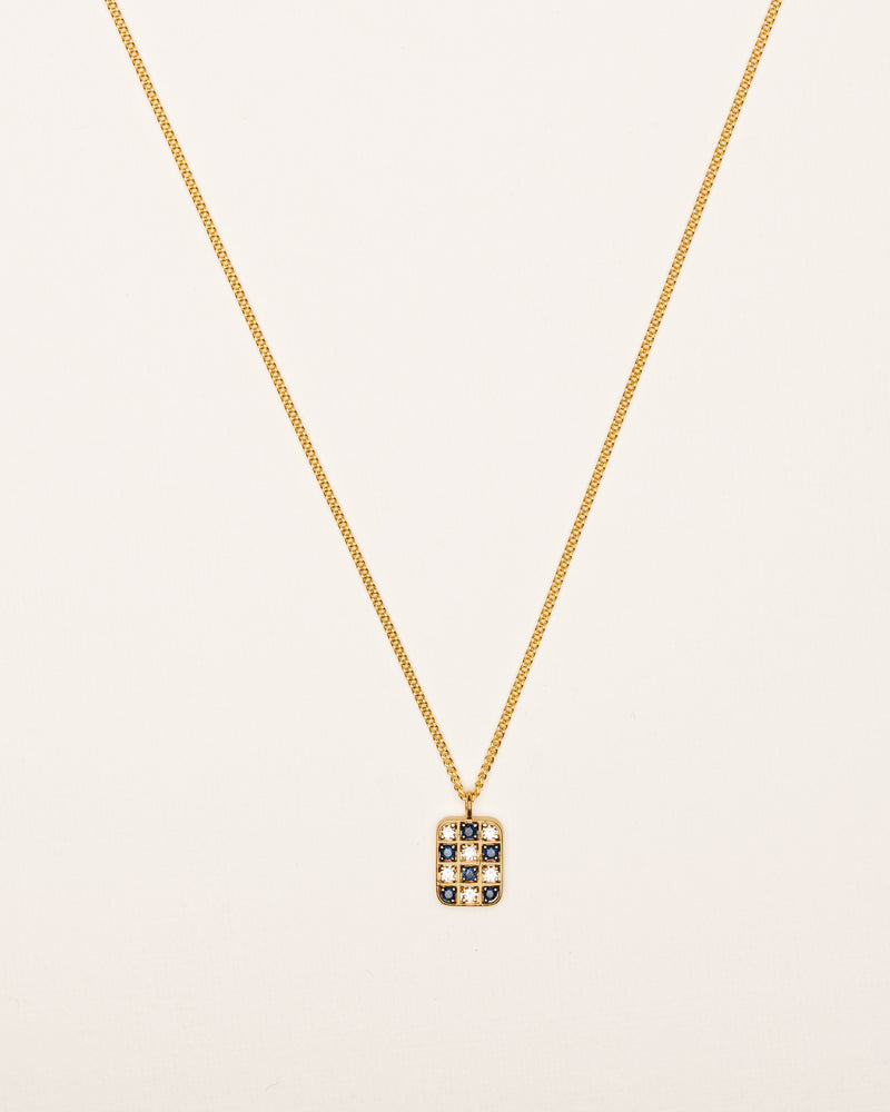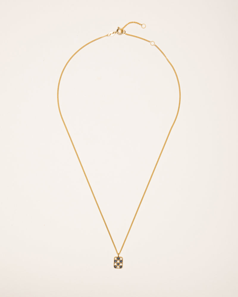 Necklace with sapphire and diamond chessboard pendant in 18 ct. gold