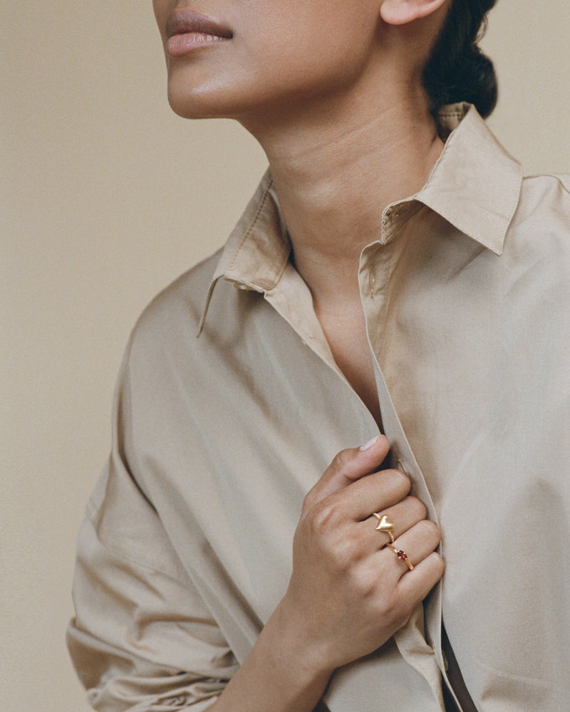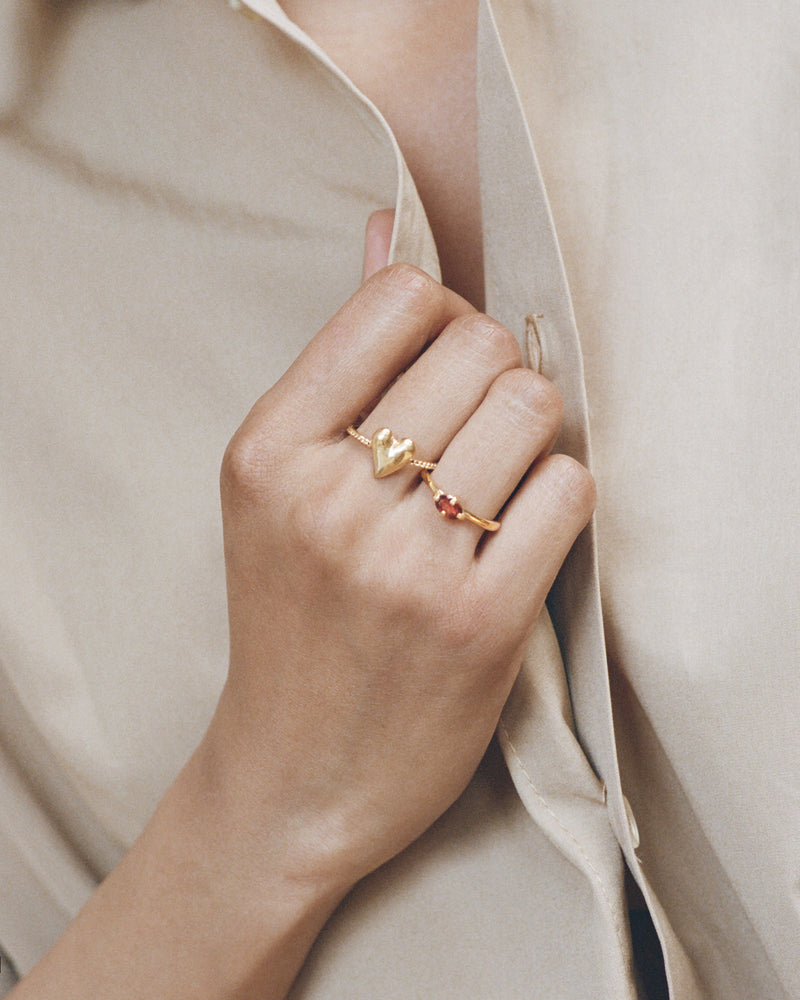 The organic shape of the ring is a manifestation of Wouters & Hendrix' love for the imperfect, while the red of the garnet symbolizes love. 'The Tell-Tale Heart' collection is about love symbols and what they represent. Exuding a unique artistry, every Wouters & Hendrix piece is handmade by a team of goldsmiths in our Antwerp atelier.
