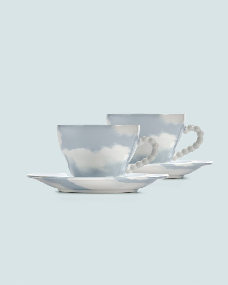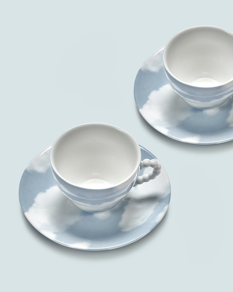 Life is but a dream, preferably served in radiant white porcelain. These Rêve de Rêves tea cups are painted with drifting clouds across a bright blue sky, turning every coffee break into a moment of surreal escapism. Made for hopeless romantics and unapologetic daydreamers, they softly put the ‘high’ back into high tea.