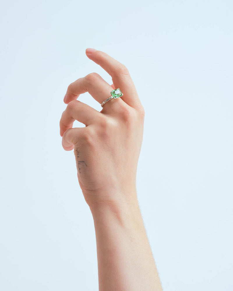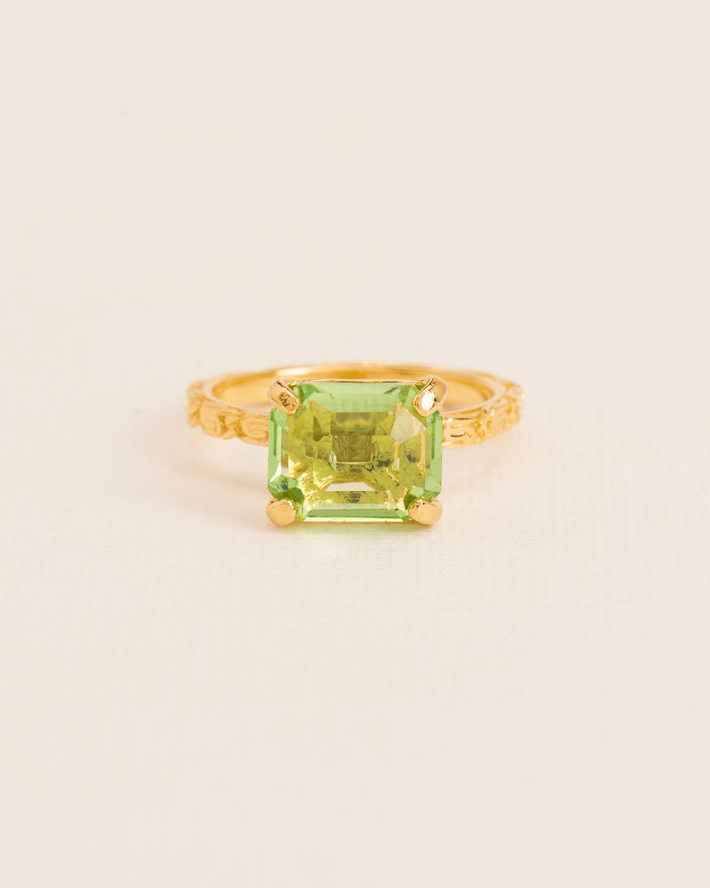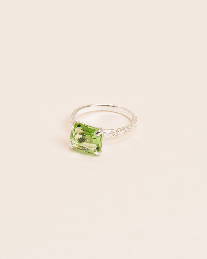 This ageless interpretation of a ring is only challenged by the use of our signature chapters motive. Complimented by the peridot crystal it is carrying, this ring results in an incontournable you will cherish forever. Incontournables that become a part of you, the designs from the ‘Les Eternelles’ collection are treasures to have and to hold forever. Exuding a unique artistry, every Wouters & Hendrix piece is handmade by a team of goldsmiths in our Antwerp atelier.