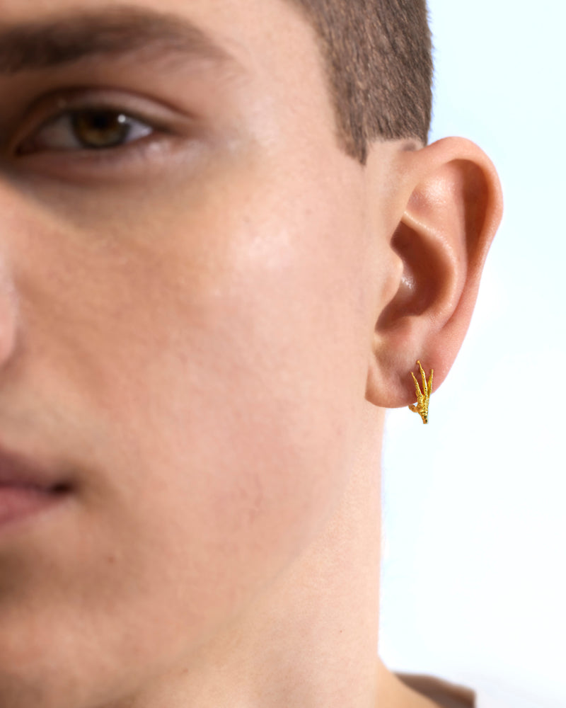 Single stud earring with cream diamond, ruby and garnet in 18 ct. gold