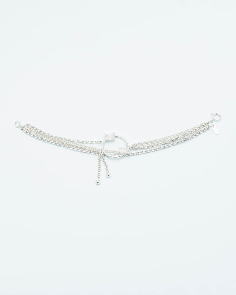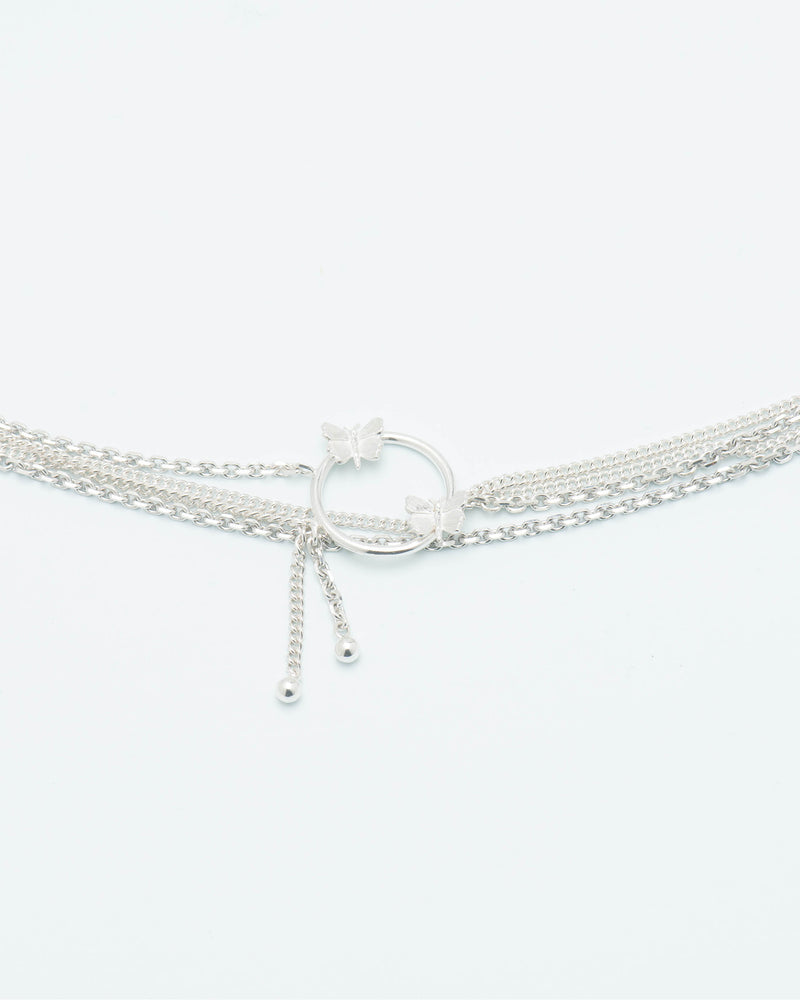 Ethereal and free-spirited, this statement butterfly bracelet with mixed chains and dangling spheres is a nostalgic journey back to our carefree millennial 2001 collection.