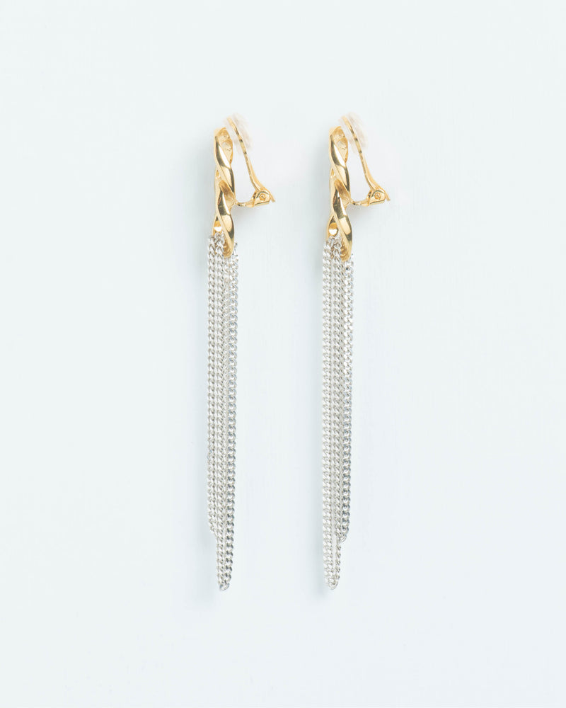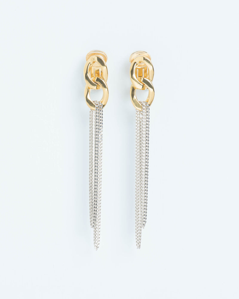 Statement clip earrings with chunky chain element and falling chains