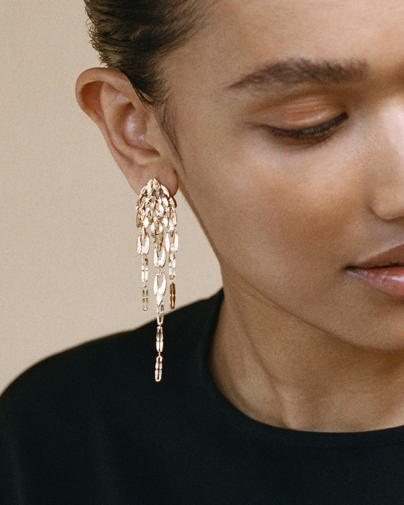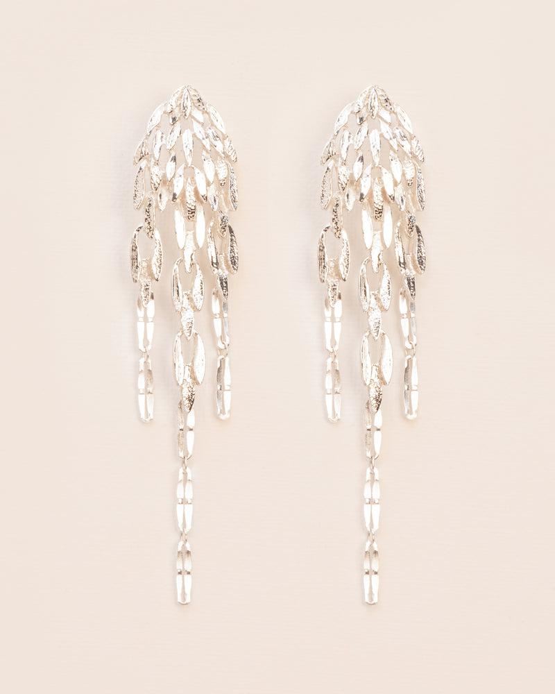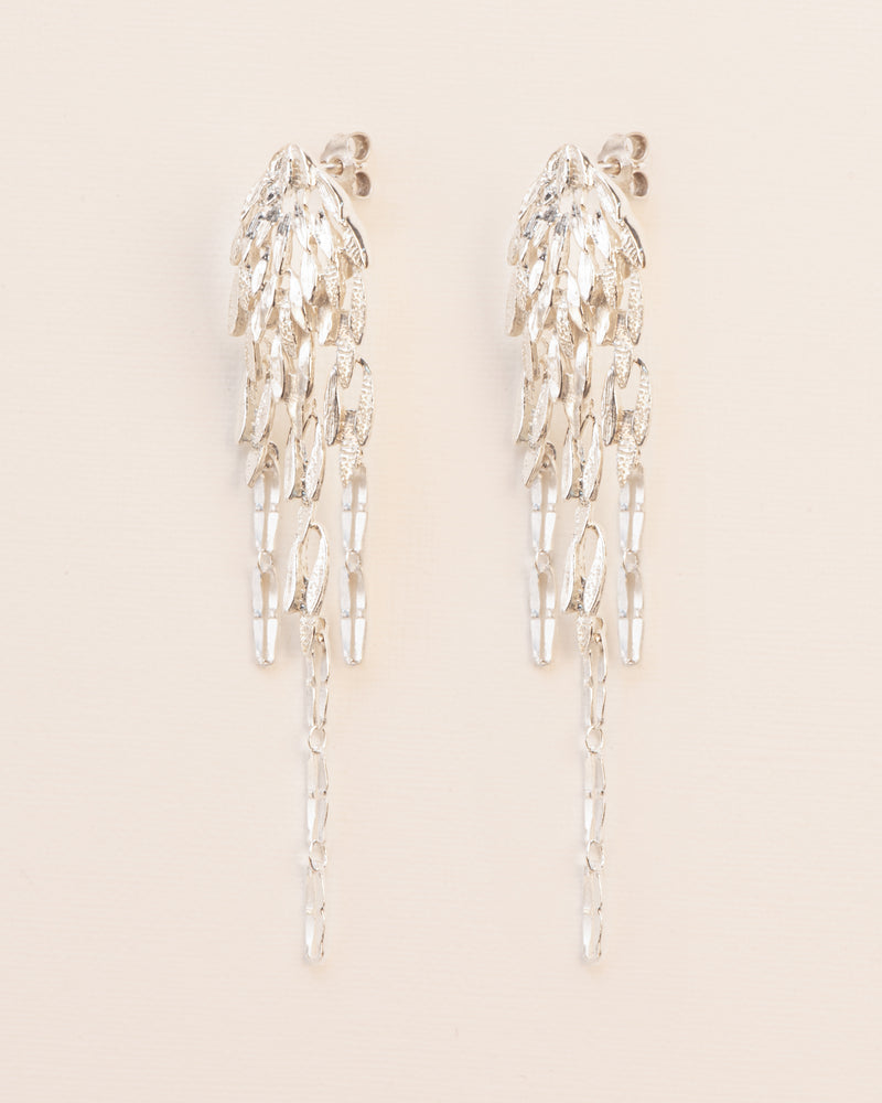 Dangling silver leaves reminiscent of the leaves dangling from a willow tree. In awe of nature’s infinite perfection, the ‘Voyages Naturalistes’ collection tries to grasp the everchanging and turn it into a wearable memory. Every piece is handmade by a team of goldsmiths in our Antwerp atelier.