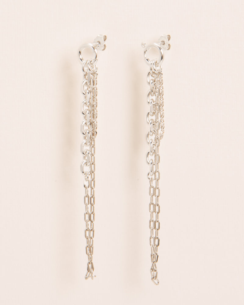 The ‘Midnight Children’ collection is the epitome of what punk exemplifies in the world of Wouters & Hendrix. Inspired by the poetry of nightlife, the collection blurs the boundaries between chunky and delicate, between fancy and ferocious, making it a companion on your every adventure from day to night. These 'Midnight Children' stud earrings, spring ring clasps and falling chains step into the limelight as precious components. The silver finish stands out, echoing black and white scenes after dark. Exuding a unique artistry, every Wouters & Hendrix piece is handmade by a team of goldsmiths in our Antwerp atelier.