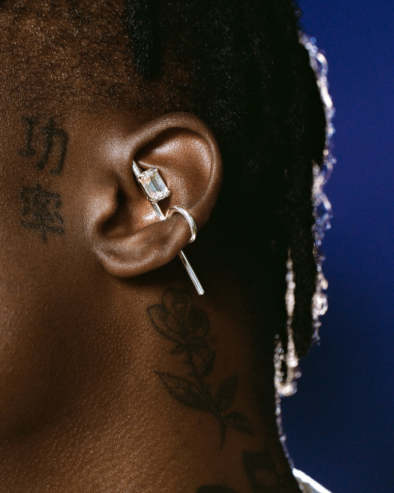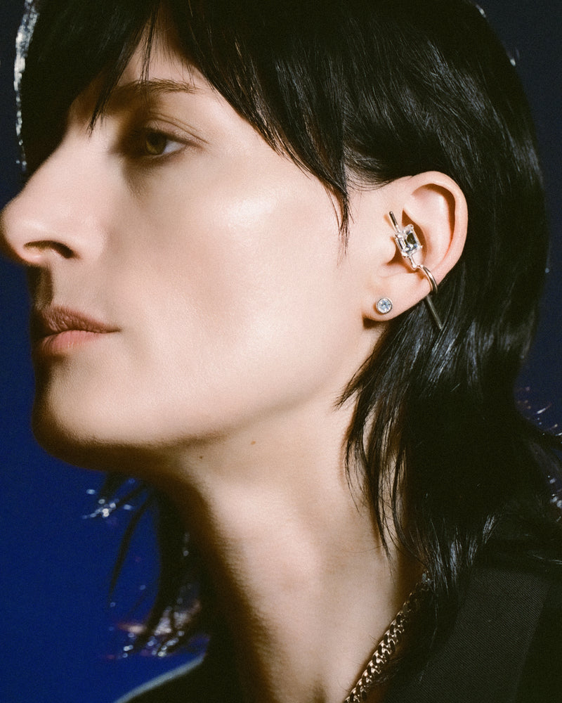 A classical T-lock forms the basis in the design of this inner ear cuff from the 'Midnight Children' collection. ‘Midnight Children’ is the epitome of what punk exemplifies in the world of Wouters & Hendrix. Inspired by the poetry of nightlife, the collection blurs the boundaries between chunky and delicate, between fancy and ferocious, making it a companion on your every adventure from day to night. The bright crystal on the cuff is a nod to nocturnal flashes of light. Exuding a unique artistry, every Wouters & Hendrix piece is handmade by a team of goldsmiths in our Antwerp atelier.